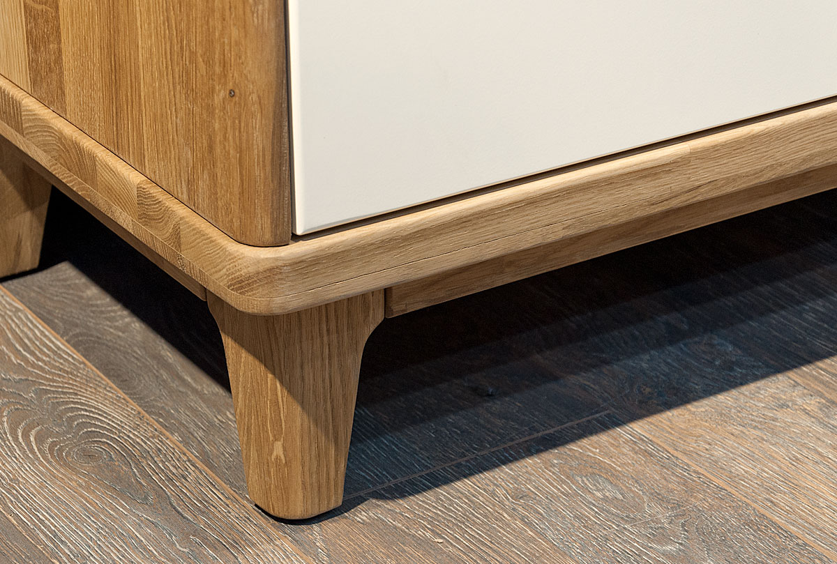 ✅ Тумба изготовлена из комбинации материалов - массива дуба и эмали. Из массива дуба изготовлен корпус и вставки с фрезеровкой.