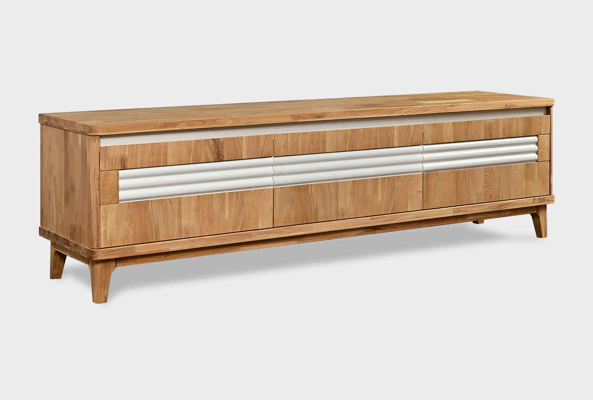 Тумба под телевизор Wallstreet 170 в цвете «к-бейц-масло, ф-бейц-масло, вст-белый» выполнена в современном стиле Лофт с сочетанием текстуры натурального дерева и акцентных вставок. Светлый оттенок изделия придаст помещению атмосферу упорядоченности и спокойствия. Длинная тумба ТВ идеально подходит для гостиной и спальни.
