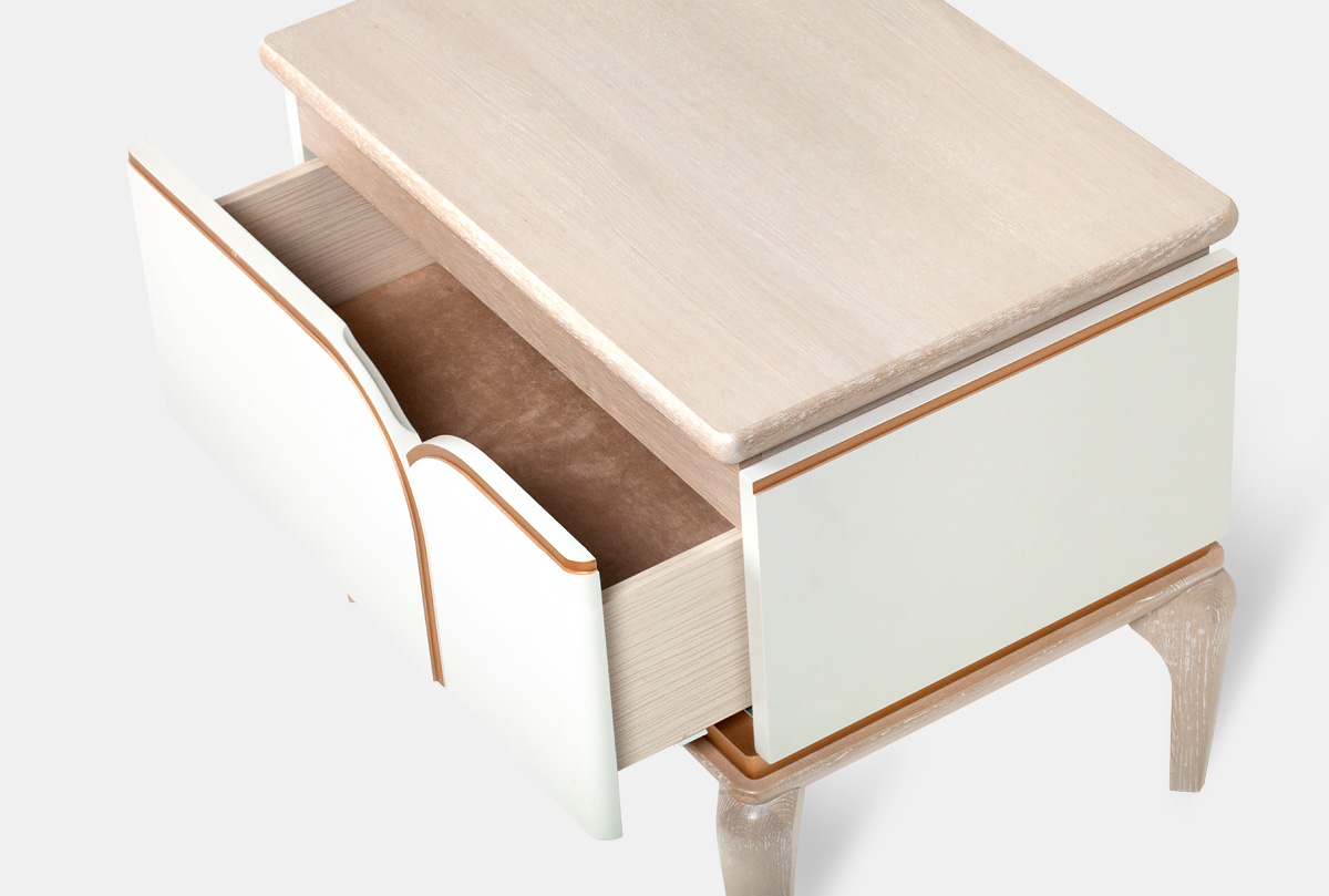 Прикроватная тумба «Алекса» в цвете "айвори+жемчужный дуб, золотая патина" на высоких гнутых ножках изящна и воздушна. Вместительный выдвижной ящик позволит вам удобно и комфортно разместить все необходимые вещи, а оптимальная высота тумбы идеально подходит для того, чтобы разместить лампу и наслаждаться чтением книги перед сном. Тумба выдержана в стиле современной классики, ее уникальность оценят все ценители прекрасного.