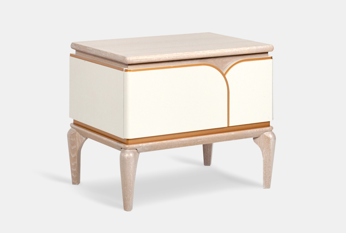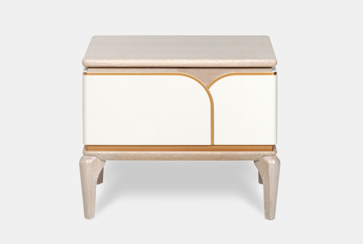 Тумба прикроватная "Алекса"; айвори+жемчужный дуб, золотая патина
