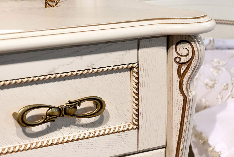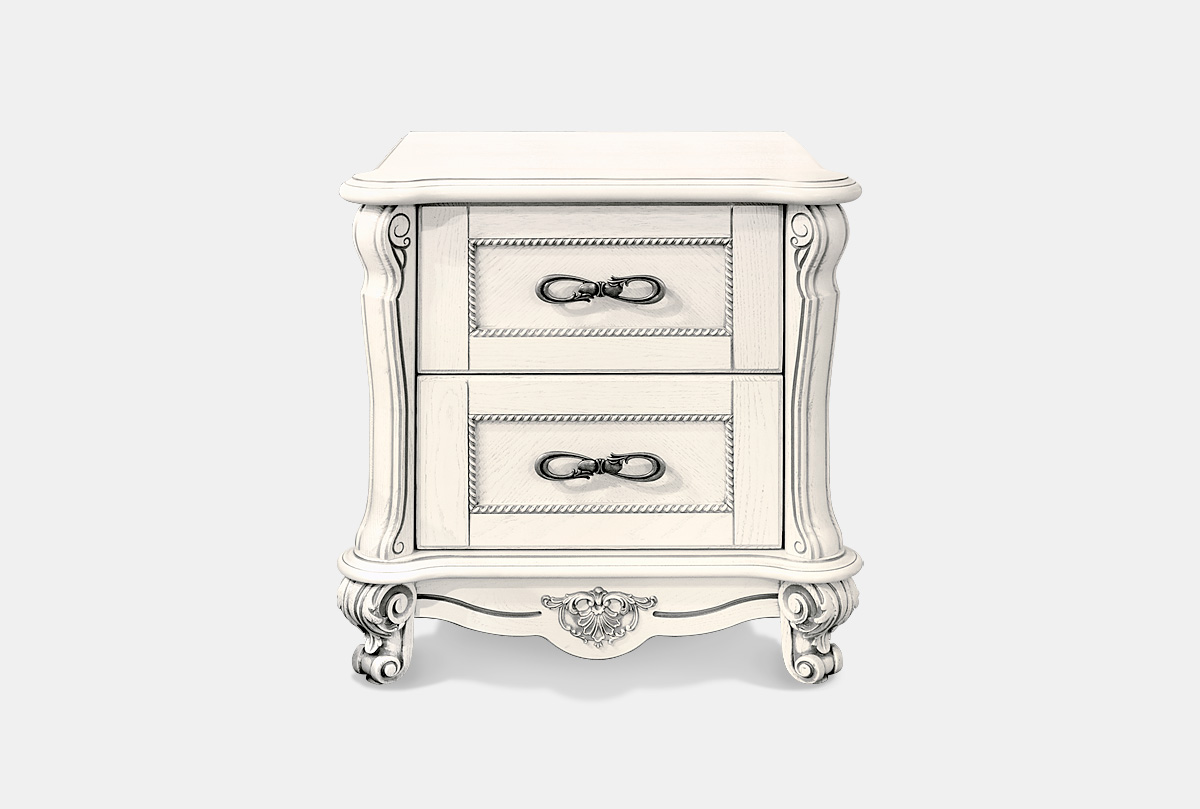 Вы требовательны не только к себе, но и ко всем остальным и хотите окружать себя только самым лучшим? Тогда эта прикроватная тумба из коллекции «Алези» в цвете «слоновая кость с серебром» создана для Вас! Изготовленная из шпона и массива дуба, украшенная декоративными элементами, она привнесет хорошее настроение в вашу спальню и обязательно станет Вашим «любимчиком».