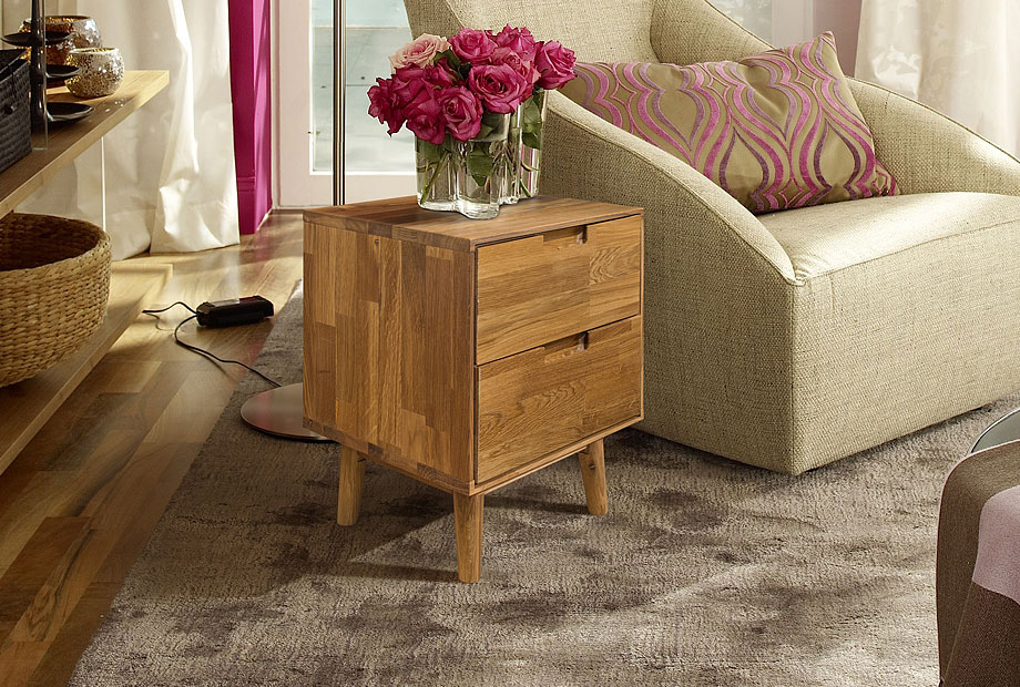 Прикроватная тумба «Ирвинг» продолжает эстетику коллекции в духе Mid-century modern. Лаконичная геометрия корпуса и утончённые скошенные ножки придают конструкции визуальную лёгкость. Благодаря использованию массива дуба с выразительным природным рисунком и экологичным покрытием, тумба становится уникальным предметом интерьера.
