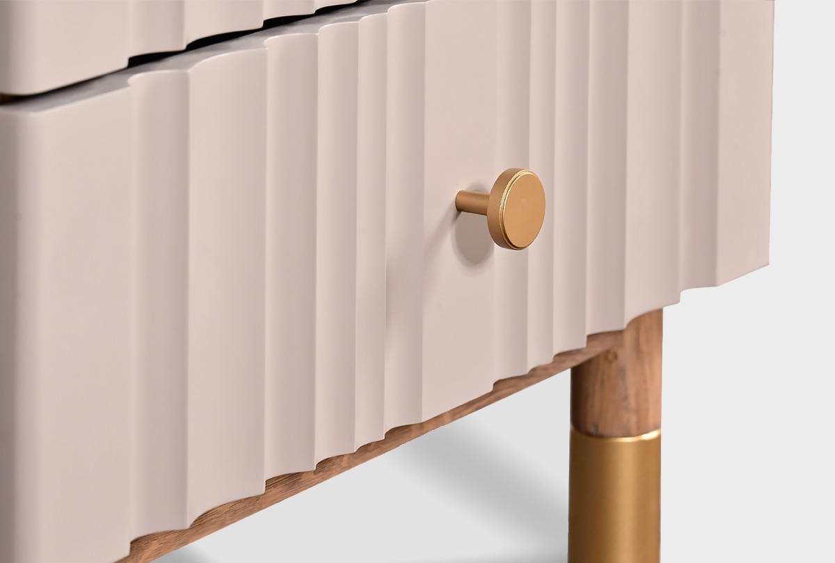 Коллекция Меридиан — это воплощение современного мебельного искусства, где каждая деталь продумана до совершенства. Минималистичные формы, высокие ножки, волнообразные фасады, имитирующие драпировку атласной ткани, и изысканная позолоченная фурнитура создают уникальный образ. Сочетание текстурного массива дуба и фрезерованных фасадов в ультрамодных пастельных тонах позволяет интегрировать коллекцию в различные интерьеры, создавая ваш собственный шедевр.