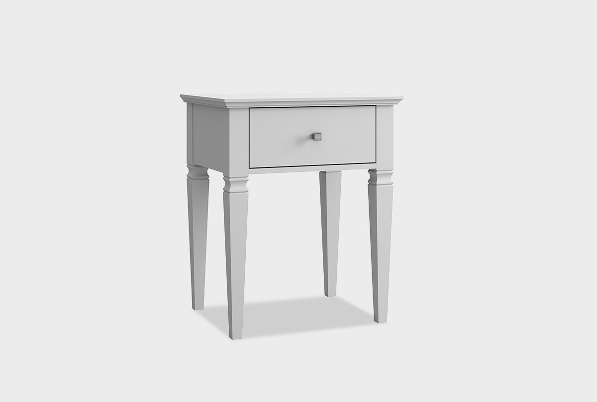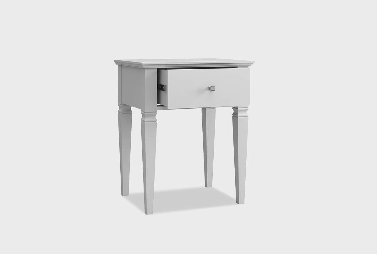 Тумба прикроватная «Ольса-С» 01 в цвете «белый лак» выполнена из благородного массива сосны. Красота тумбы в её искренней простоте и природном очаровании. Это не броская роскошь, а тёплая, дышащая эстетика натурального дерева. Мягкие переливы сосновой текстуры, проявленные матовым покрытием, создают умиротворяющий и тактильно приятный образ. Оснащена одним выдвижным ящиком и удобной поверхностью для ночника.