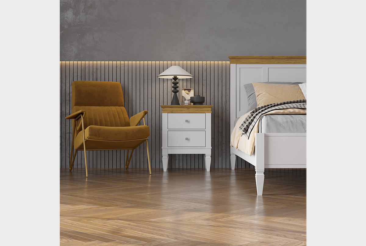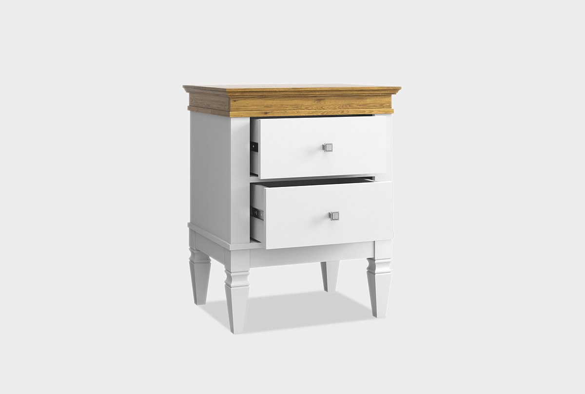 Тумба прикроватная «Ольса-С» 02 в цвете «белый лак+антик 24» выполнена из благородного массива сосны. Красота тумбы в её искренней простоте и природном очаровании. Это не броская роскошь, а тёплая, дышащая эстетика натурального дерева. Мягкие переливы сосновой текстуры, проявленные матовым покрытием, создают умиротворяющий и тактильно приятный образ. Оснащена двумя выдвижными ящиками и удобной поверхностью для ночника.