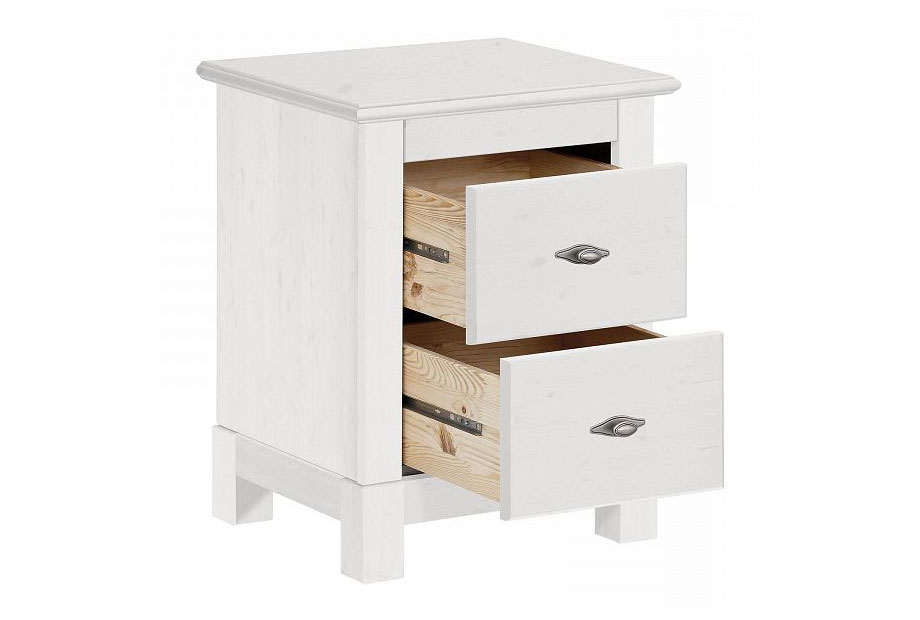 Тумба прикроватная «Рауна» 02 для Вашей спальни в стиле Прованс. Имеет достаточное пространство для лампы, книг и журналов. В ящиках вы также можете хранить все, что вы хотите от посторонних взглядов.