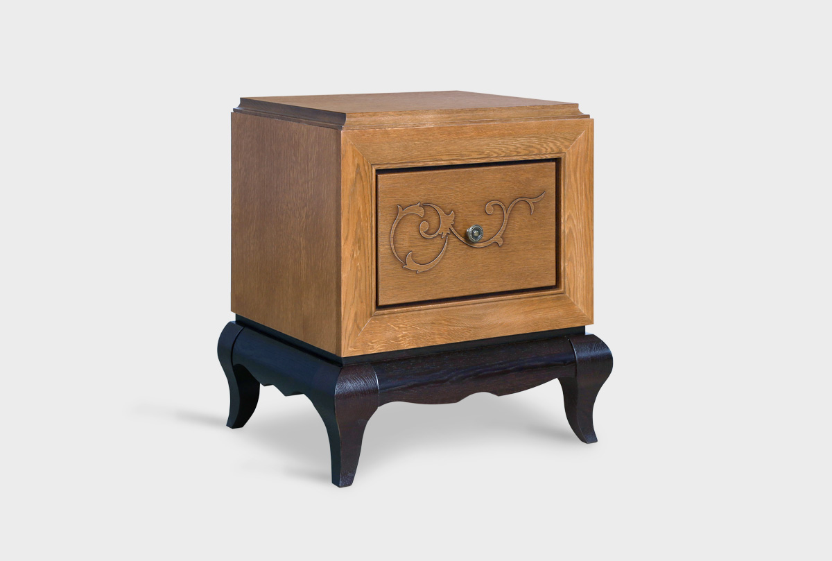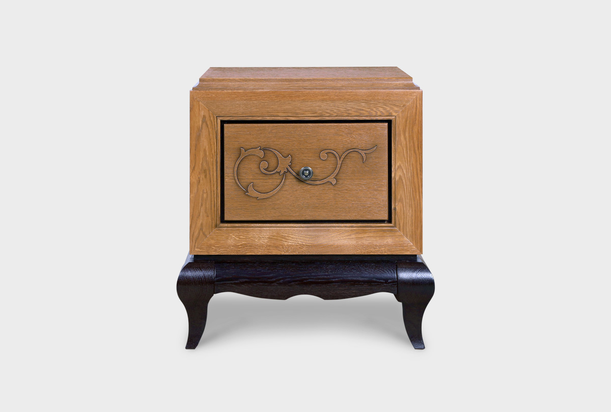 Массивность, сочетающаяся с изяществом. Традиции, встречающиеся с современностью. Мы сейчас не фантазируем, а говорим о роскошной прикроватной тумбе «Соната» с 1 ящиком в цвете «коньяк с тёмной патиной+горький шоколад». Оптимально подобранная высота идеально подойдет для того, чтобы поставить на тумбу светильник и наслаждаться чтением перед сном. Вместительные ящики помогут вам спрятать личные вещи. Орнамент на фасаде верхнего ящика, фигурные ножки и резная «юбка» завершают «образ» и делают его легче и воздушнее.