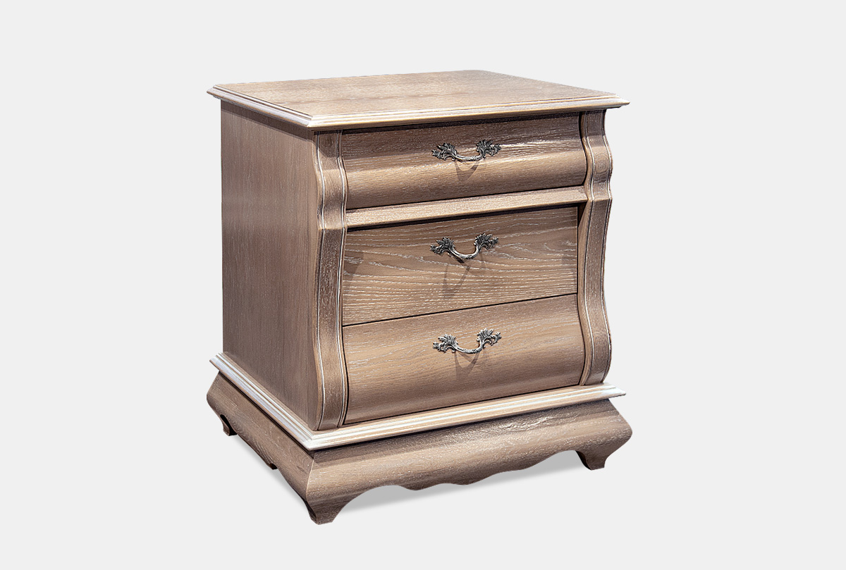 Роскошная прикроватная тумба «Тэфи» в цвете «амбэр с белой патиной» станет достойным украшением любой спальни. Изделие выдержано в современном классическом стиле, который характеризуется сочетанием классических форм и простых декоративных элементов. Модель оценят ценители эстетики: естественная красота текстуры дуба оттеняется металлическими ручками работы итальянских мастеров. На тумбу можно спокойно поставить чашечку горячего кофе, не беспокоясь повредить поверхность: лак на водной основе надежно защищает мебель от внешних воздействий. Тумба представлена в нескольких цветовых вариантах; Внутри выдвижные ящики обиты мягчайшим велюром.