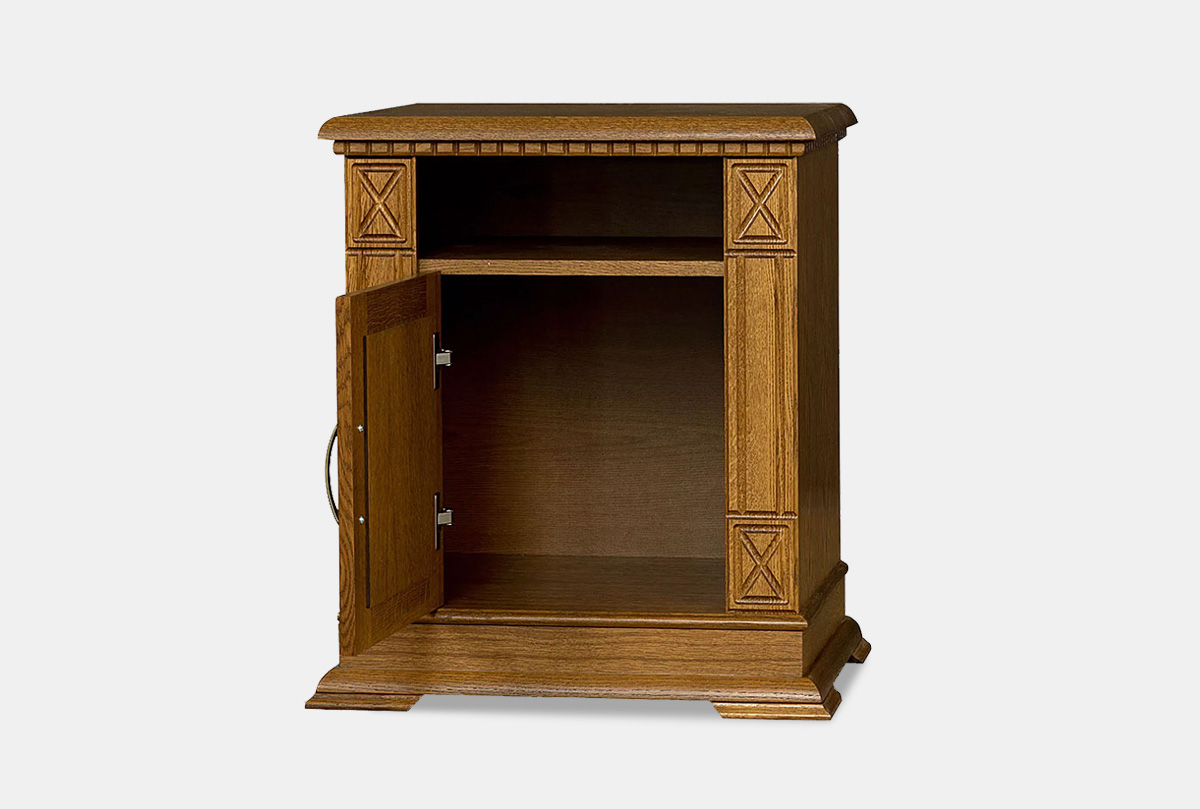 Благодаря компактным размерам эта прикроватная тумба из коллекции «Верди Люкс» подойдет даже для небольшой квартиры. Она идеально дополнит интерьер в классическом стиле и поможет сохранять в комнате порядок: благодаря вместительной нише Вы сможете хранить в тумбе разные мелочи и личные вещи. Декоративная резьба на пилястрах и фигурный цоколь придают изделию изюминку и подчеркивают классический стиль.