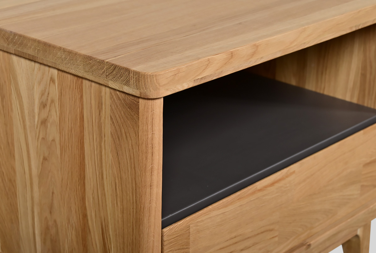 Прикроватная тумба с нишей Wallstreet в цвете «к-бейц-масло, ф-бейц-масло, п-антрацит» выполнена в современном стиле Лофт с сочетанием текстуры натурального дерева и акцентных вставок. Оттенок изделия придаст помещению атмосферу упорядоченности и спокойствия. А покрытие натурального дерева исключительно бейц-маслом придаст вам уверенности в том, что для себя и своих близких вы выбираете только самое лучшее! Тумба прикроватная отлично подойдёт для спальни, а также детской или подростковой комнаты.
