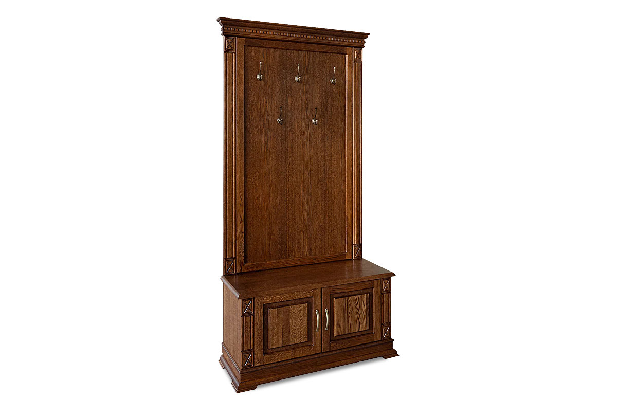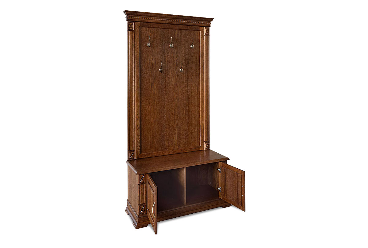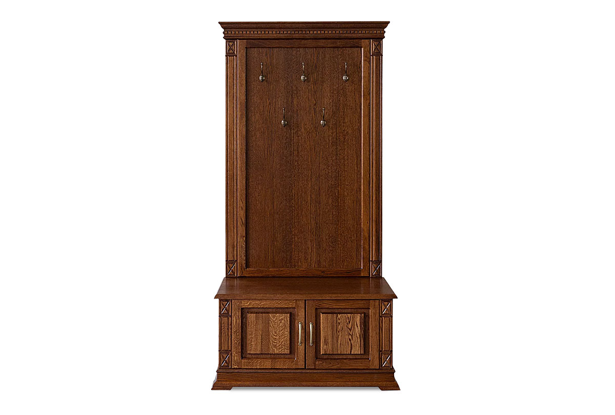 Тумба с вешалкой "Верди Люк" 05 из массива дуба для прихожей в классическом стиле. Размеры: 1148 х 2300 х 500 мм.