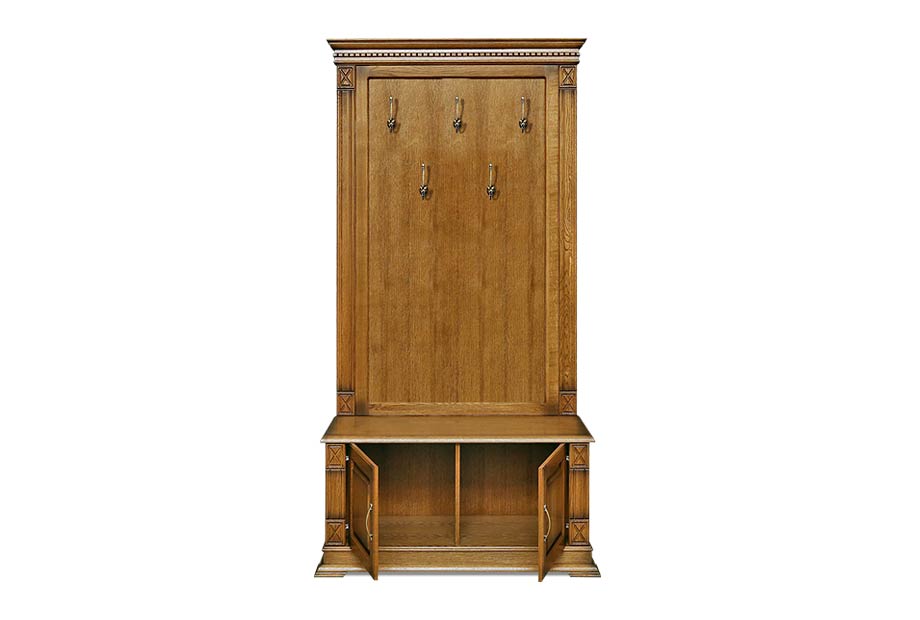 Тумба с вешалкой "Верди Люк" 05 из массива дуба для прихожей в классическом стиле. Размеры: 1148 х 2300 х 500 мм.
