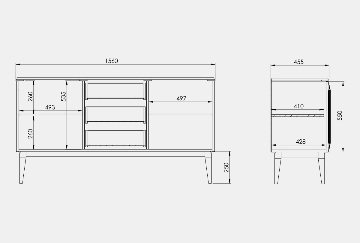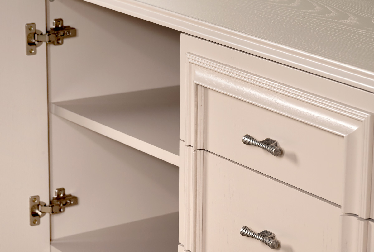 ✅ Слева и справа — два закрытых отделения с полками, каждая из которых делит пространство на две равные секции по высоте (260 мм). Эти полки отлично подойдут для хранения книг, сервизов или декоративных коробов. Дверцы имеют петли с доводчиками (Европейского пр-ва), что обеспечит плавное открывание и бесшумное закрывание.