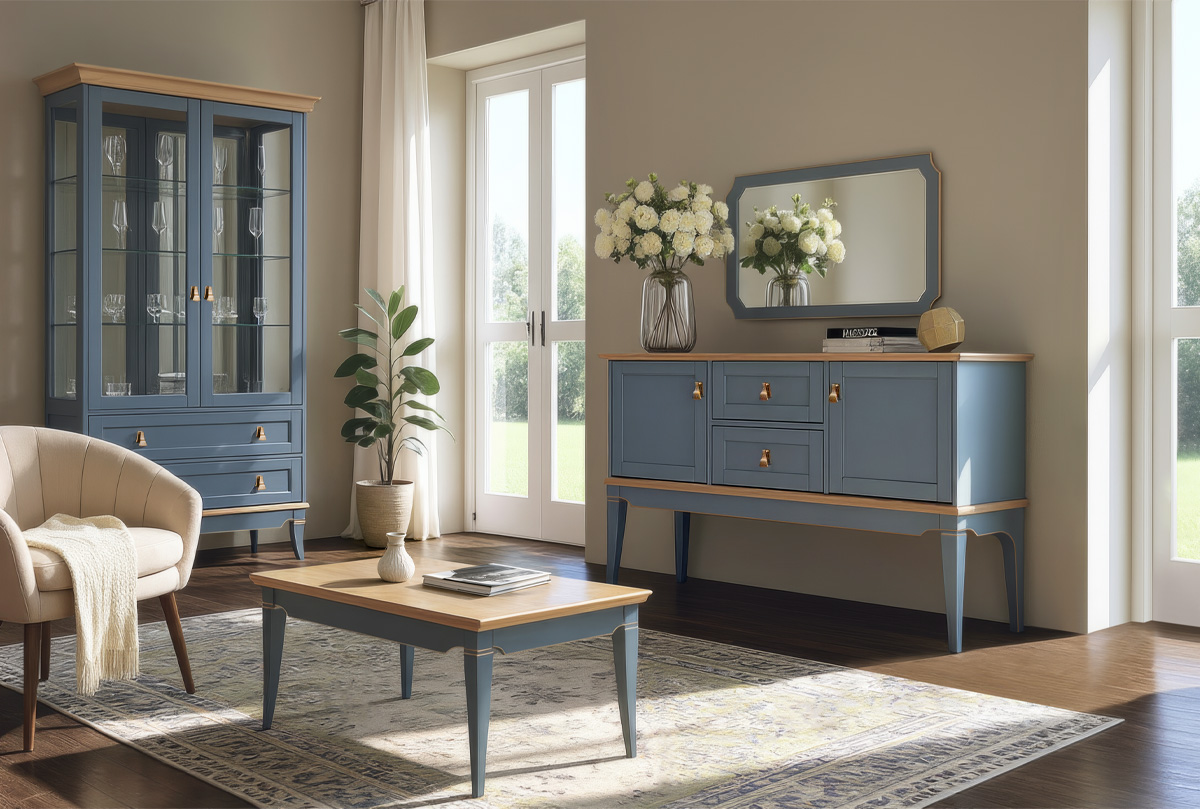 ✅ Сочетание глубоких матовых эмалевых крашений с глянцевыми элементами оттенка натурального дуба.