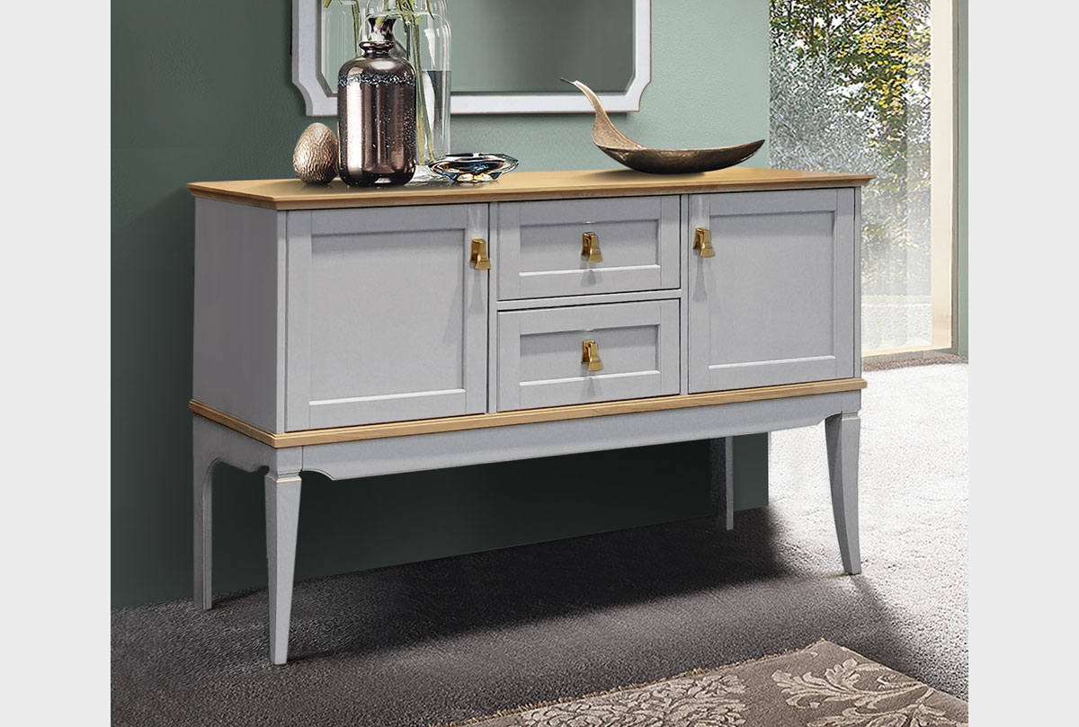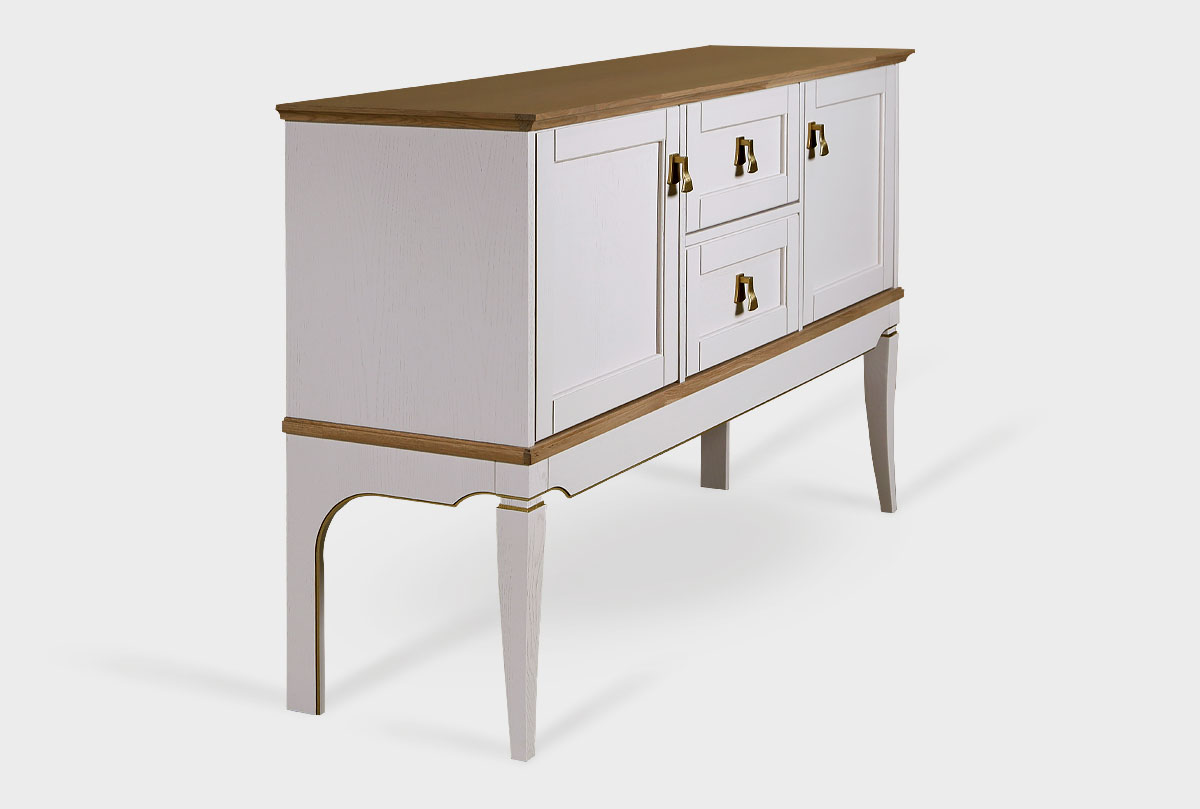 Тумба «Стюарт» для Вашей гостиной в классическом стиле, 1481 х 925 х 420 мм, в цвете "персидский жемчуг, натуральный дуб".