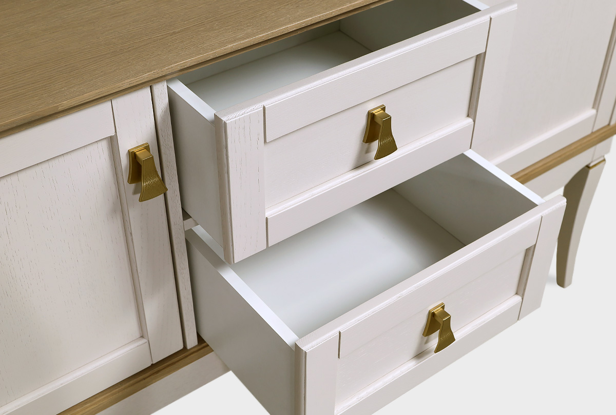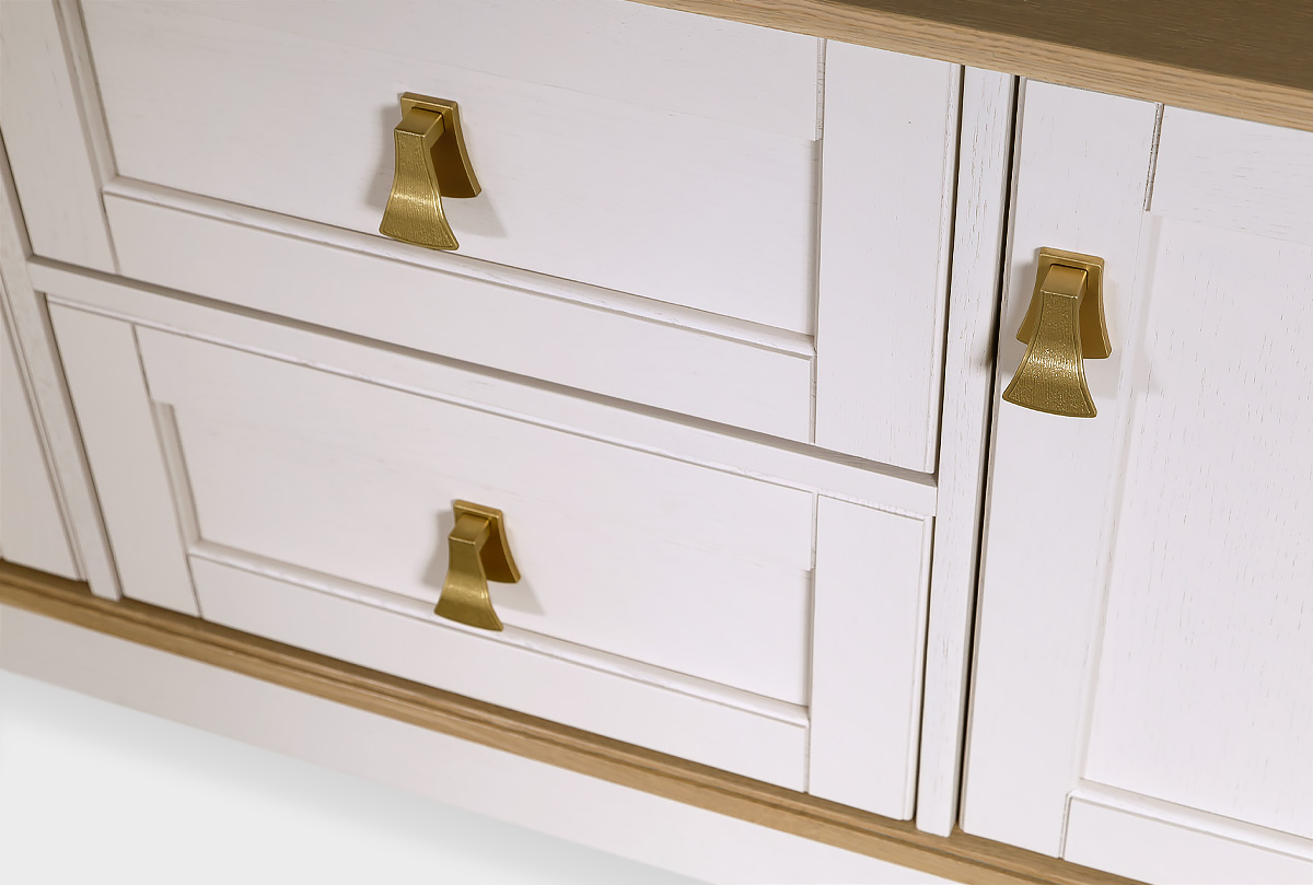 ✅ Эффектная лицевая фурнитура, выполненная в форме позолоченных кисточек, которая эффектно дополняет позолоченную фрезеровку на ножках и цоколях изделий.