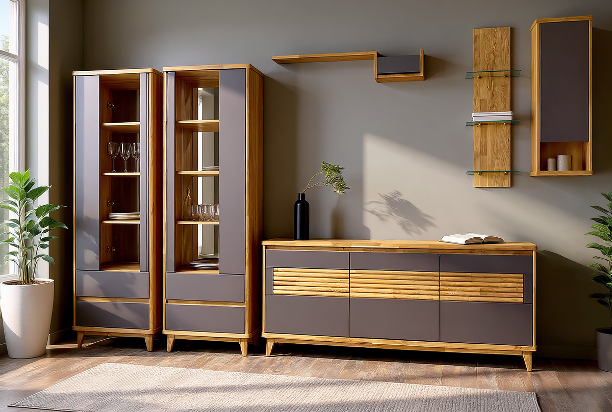 ✅ Тумба изготовлена из комбинации материалов - массива дуба и эмали. Из массива дуба изготовлен корпус и вставки с фрезеровкой.