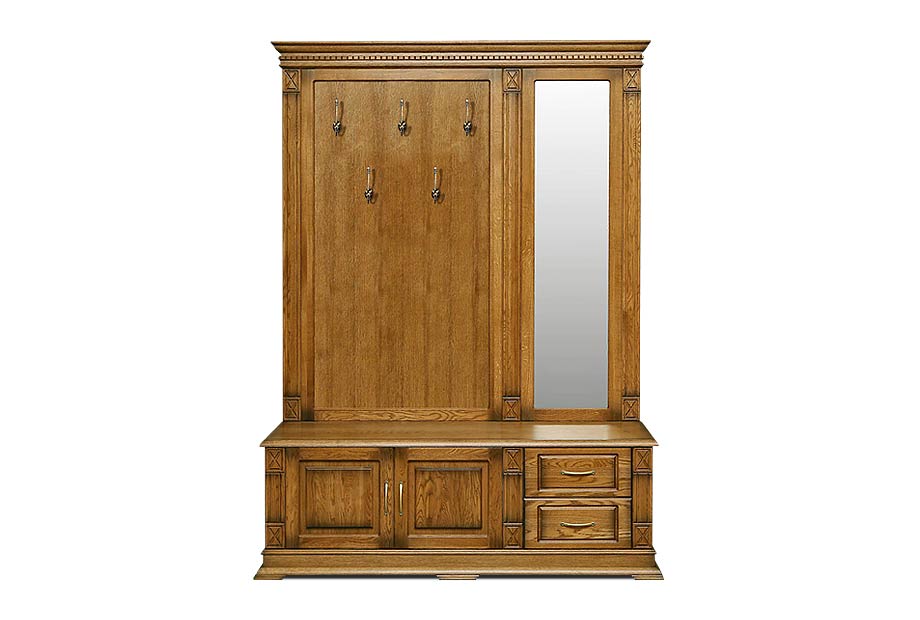 Тумба «Верди Люкс» (с вешалкой и зеркалом) из массива дуба для прихожей. Размеры тумбы: 1680 х 2300 х 500 мм.