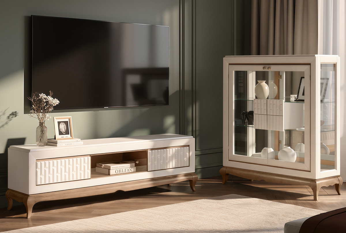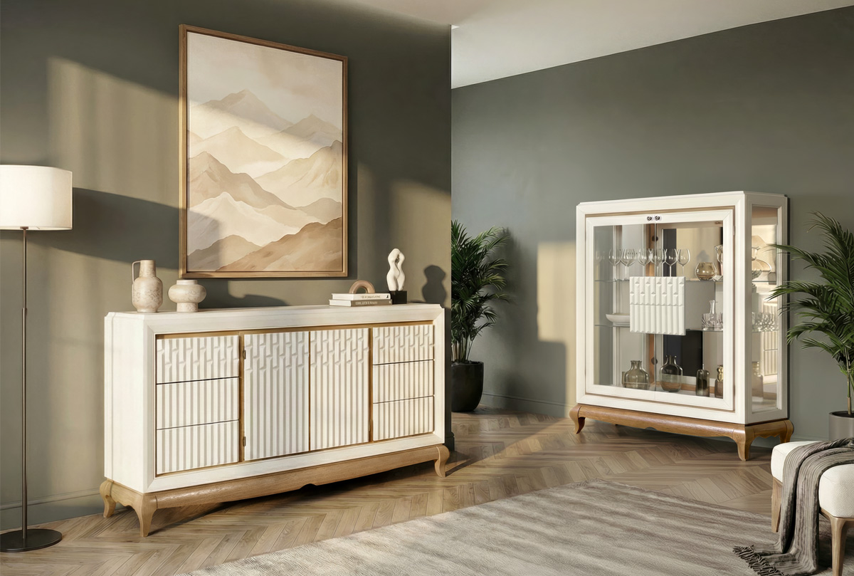 Коллекция «Армония» — это изысканная интерпретация классических форм в современном исполнении. В ней сочетаются прямые линии и мягкие изгибы, декоративная фрезеровка фасадов и воздушный силуэт за счёт волнообразного цоколя и изогнутых ножек. Каждое изделие коллекции — это акцент, который наполняет пространство теплом, ритмом и элегантностью.