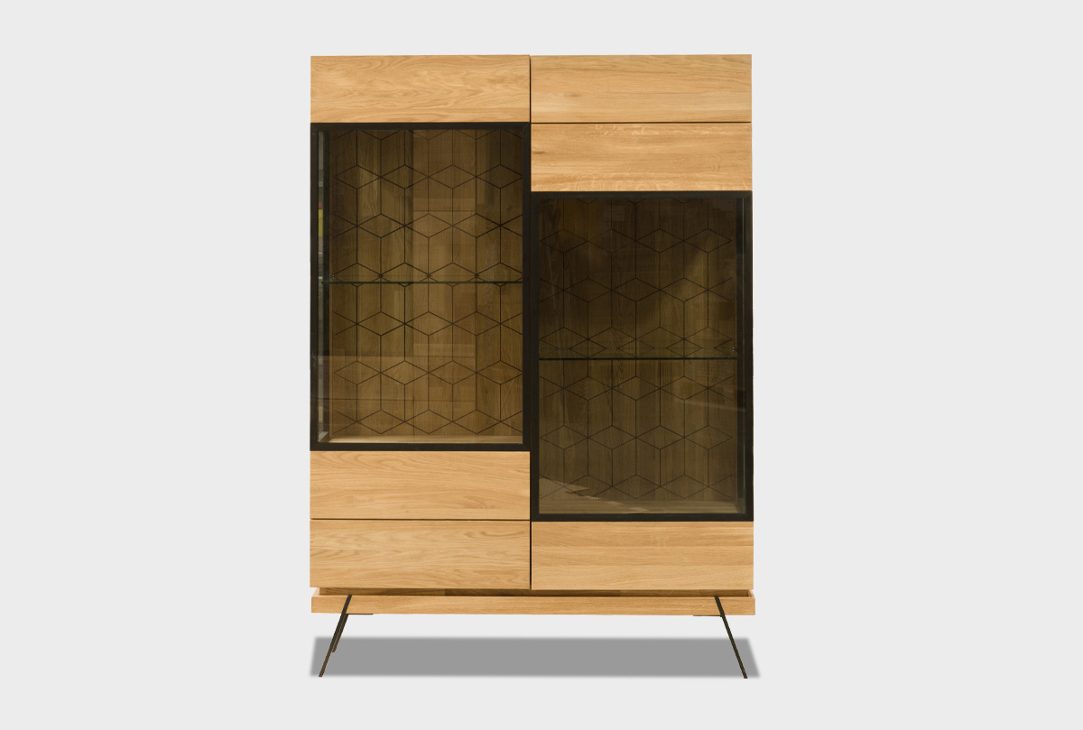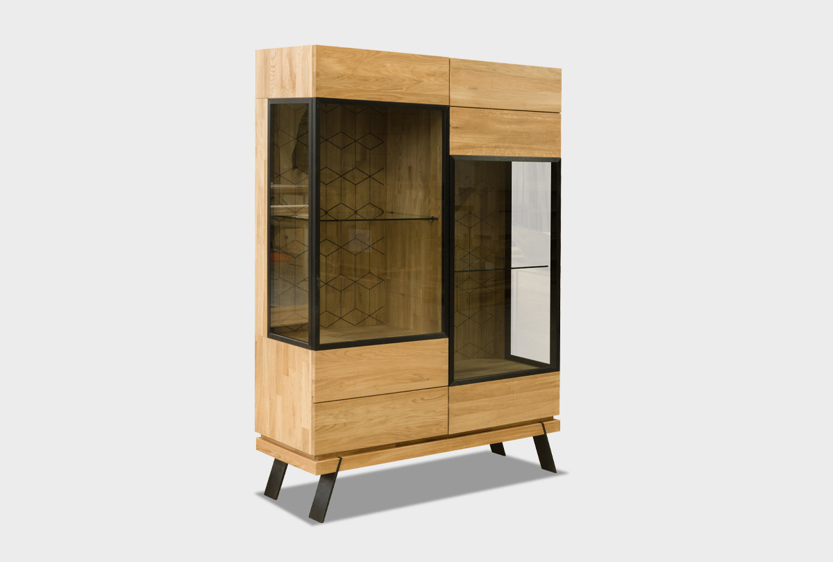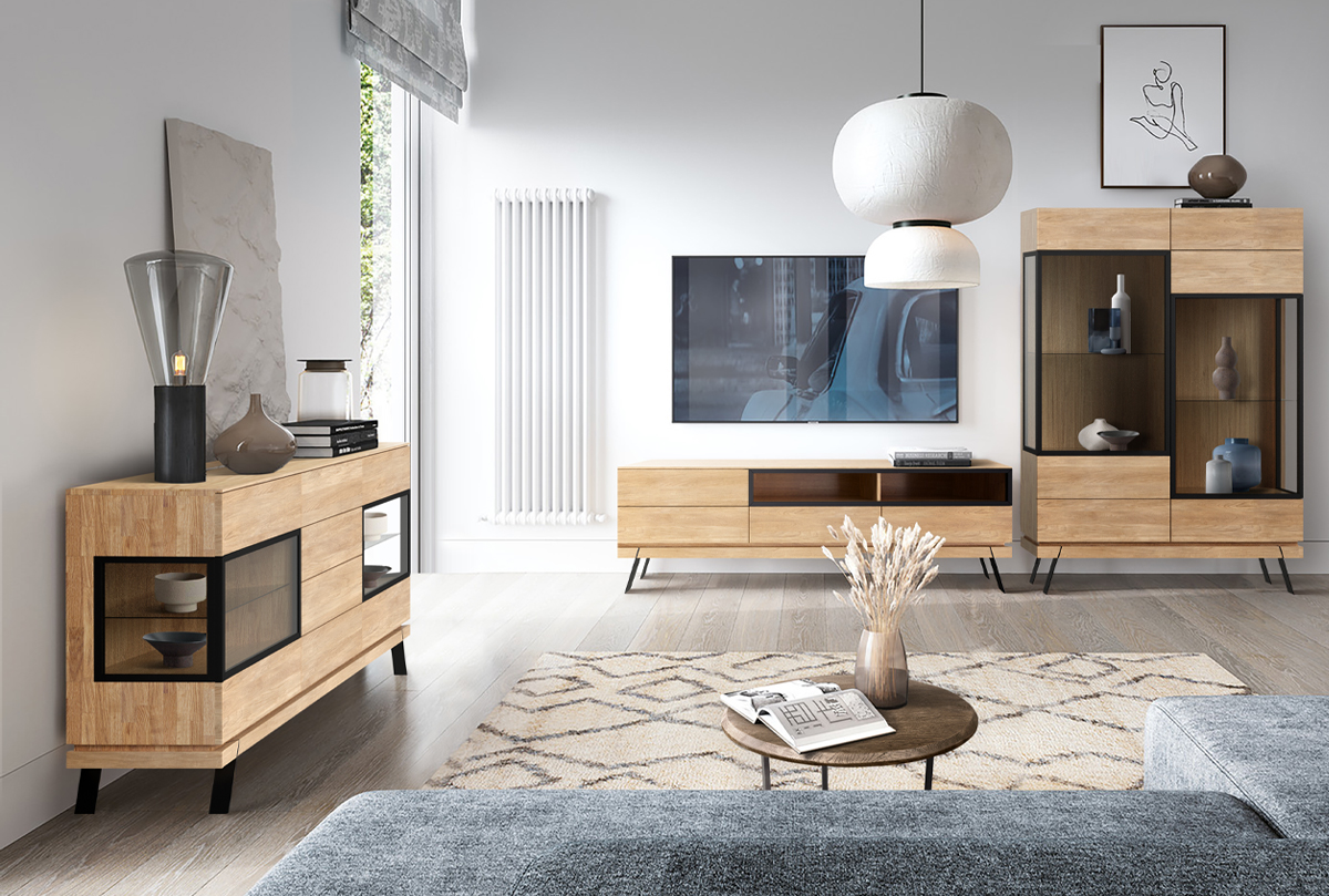 Высокая тумба в гостиную «Etna» с декором (стекло) из дуба в цвете дуб натуральный в стиле Лофт.