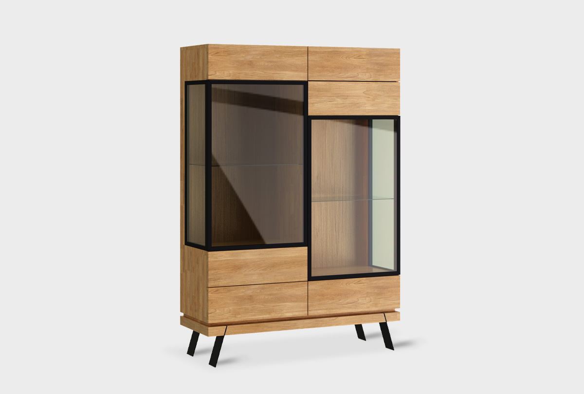 Высокая тумба в гостиную «Etna» без декора (стекло) из дуба в цвете дуб натуральный в стиле Лофт.