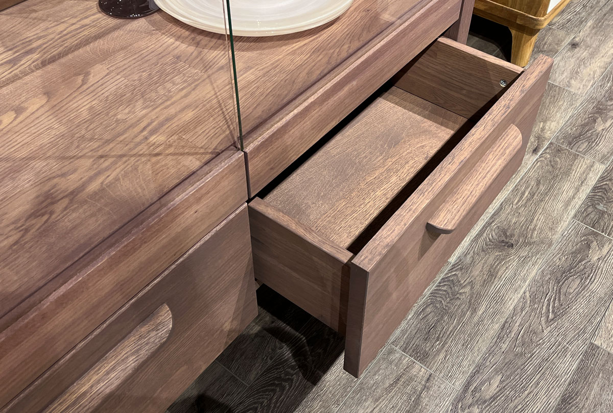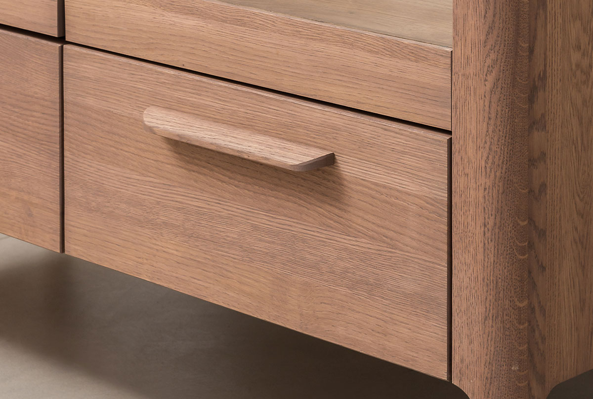 Высокая тумба «Geneva» (Женева) со стеклянными дверками в стиле Лофт из массива дуба,