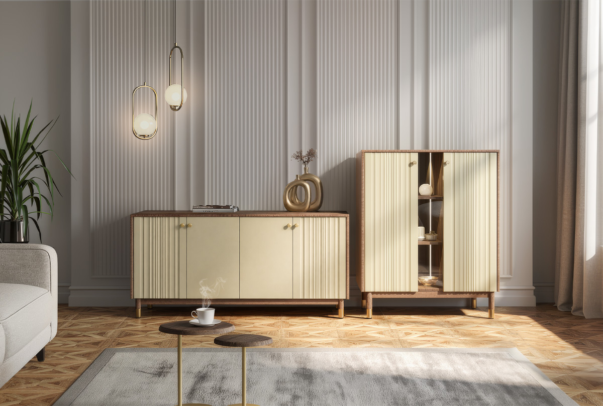 Коллекция «Меридиан» — это диалог между искусством и функциональностью. Лёгкие, текучие фасады с волнообразной фрезеровкой, высокие ножки и утончённая позолоченная фурнитура придают мебели лёгкость и ритм. Она словно оживляет пространство, наполняя его эстетикой и гармонией. Это мебель, в которую хочется всматриваться и к которой приятно прикасаться.