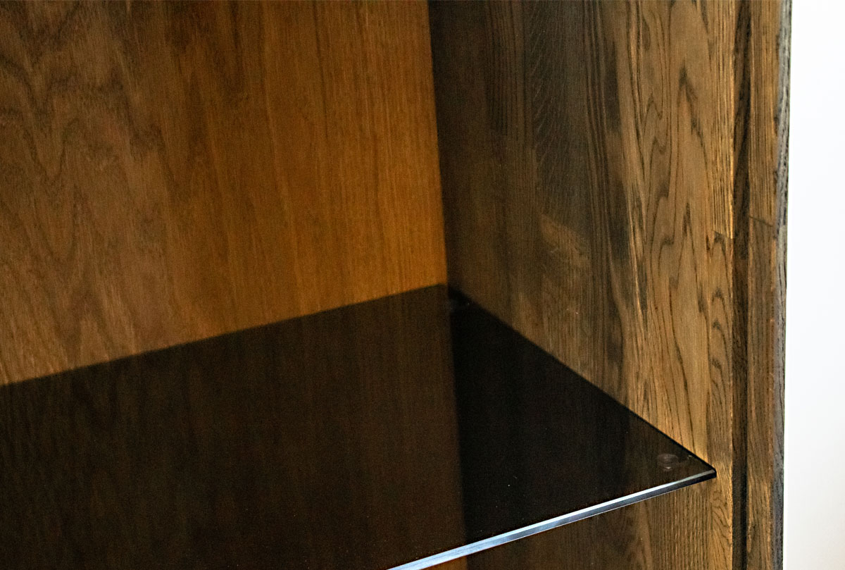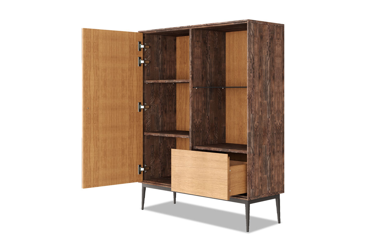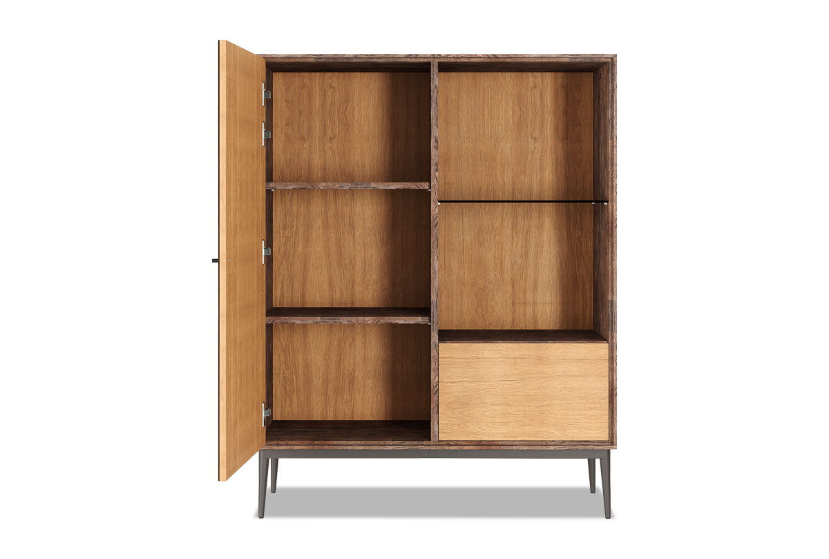 Тумба высокая "Монреаль" (стекло) из дуба на металлическом каркасе.