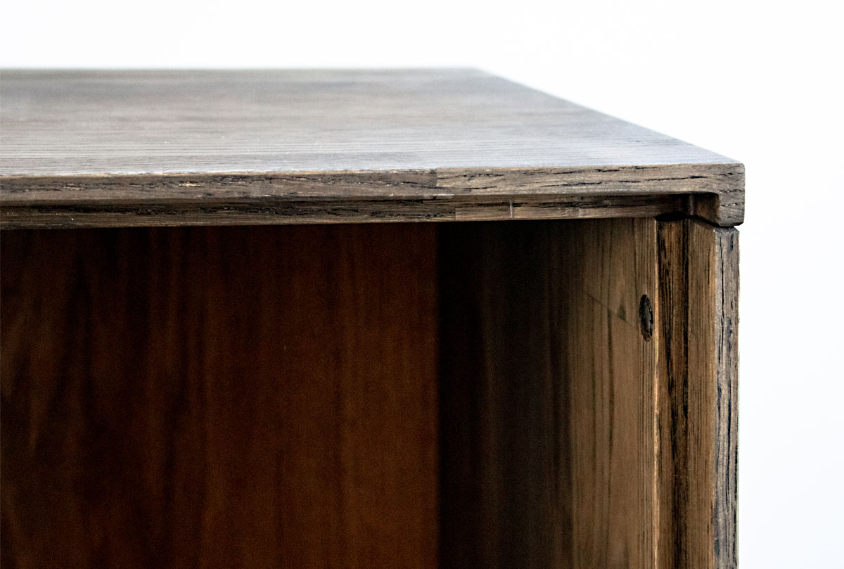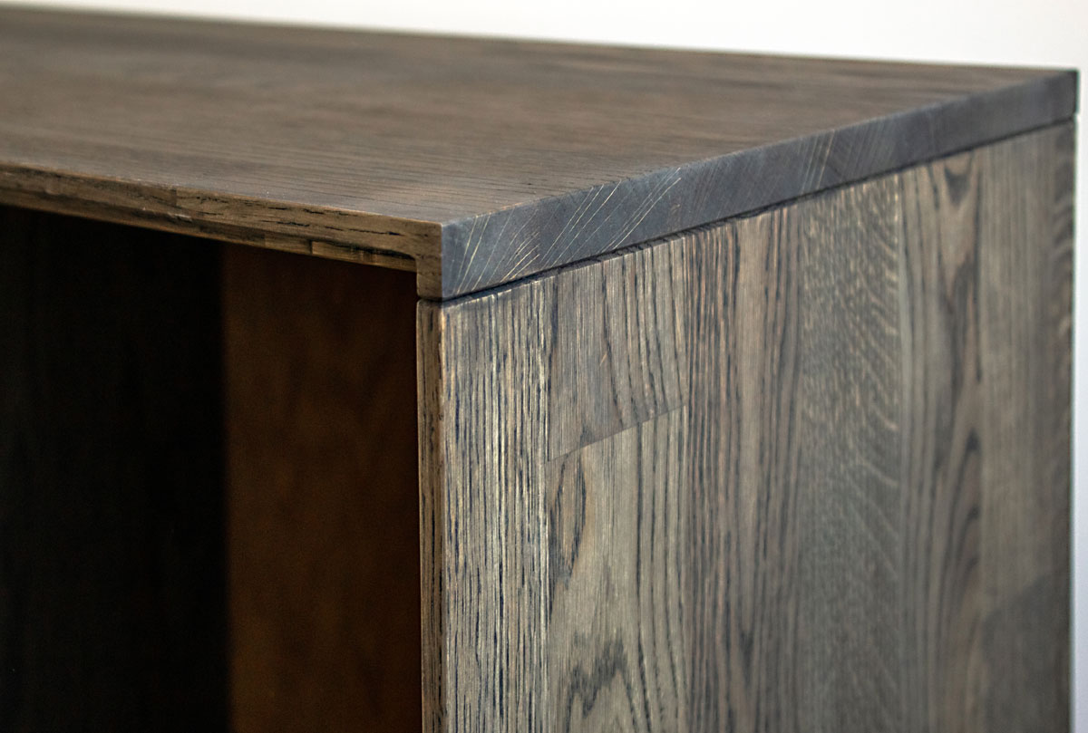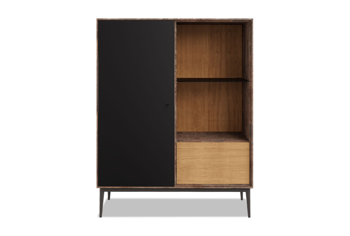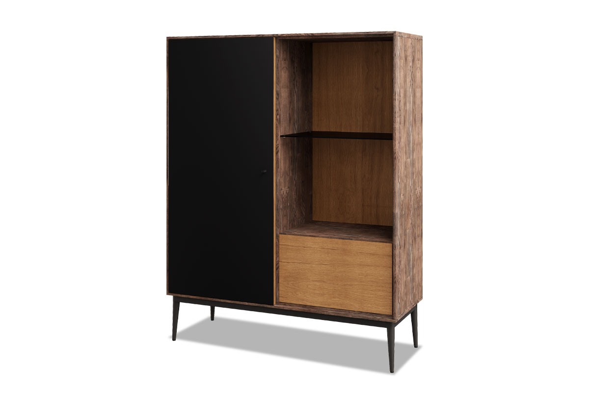 Тумба высокая "Монреаль" (стекло) из дуба на металлическом каркасе.