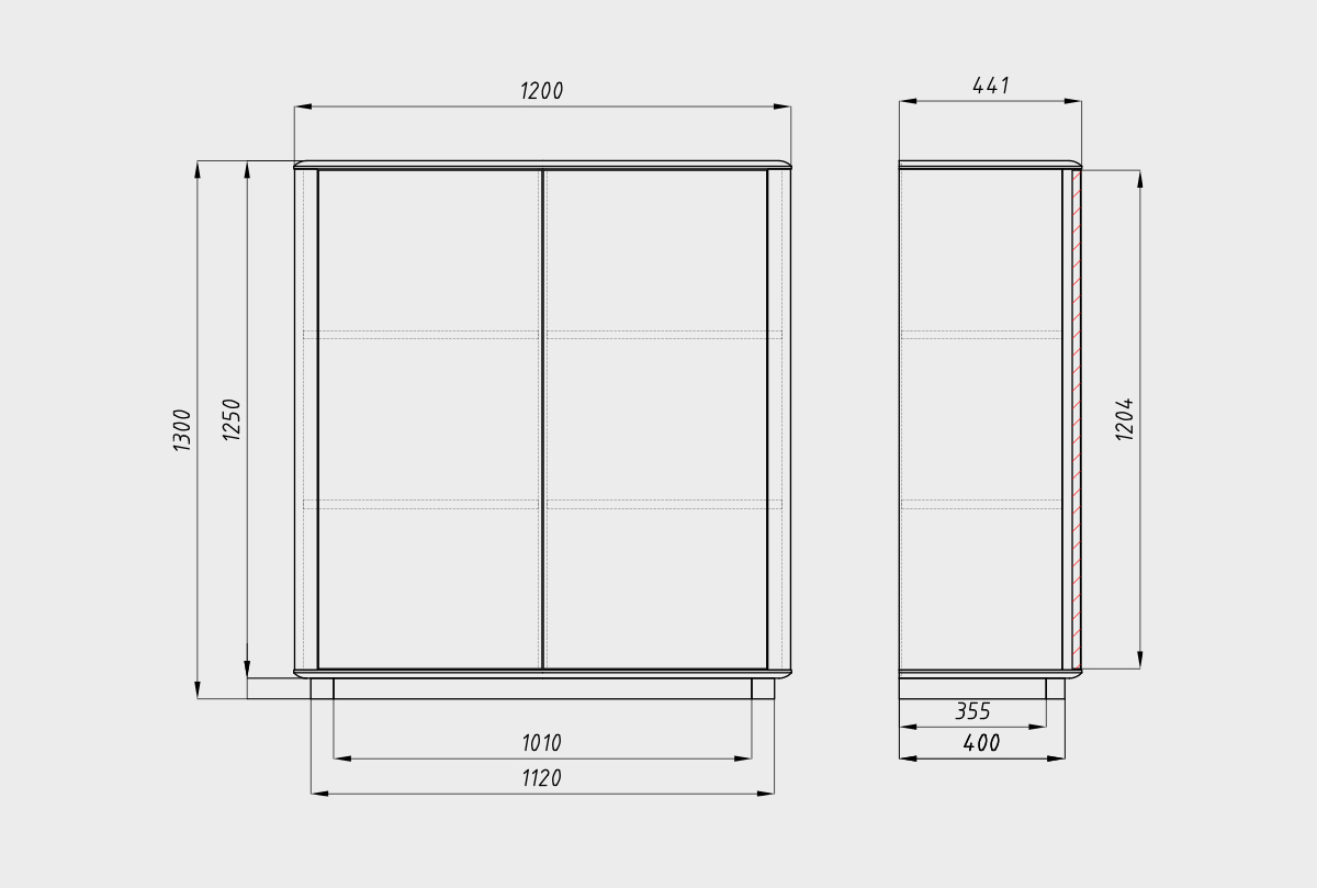 ✅ Размеры: ширина 1200 мм, высота 1300 мм, глубина 441 мм.