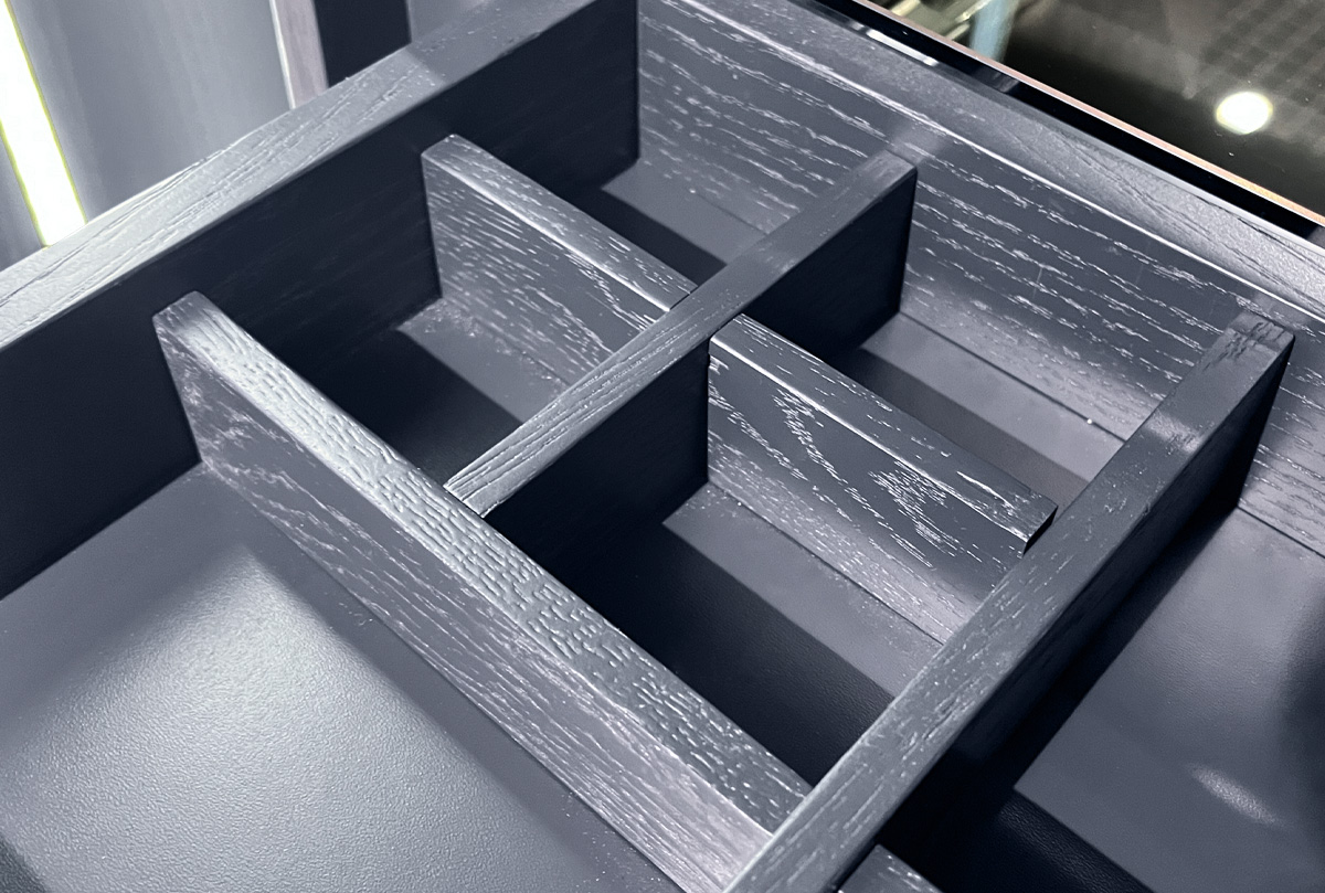 ✅ Корпус изделия изготовлен из шпонированного дубом МДФ класса безопасности Е1.
