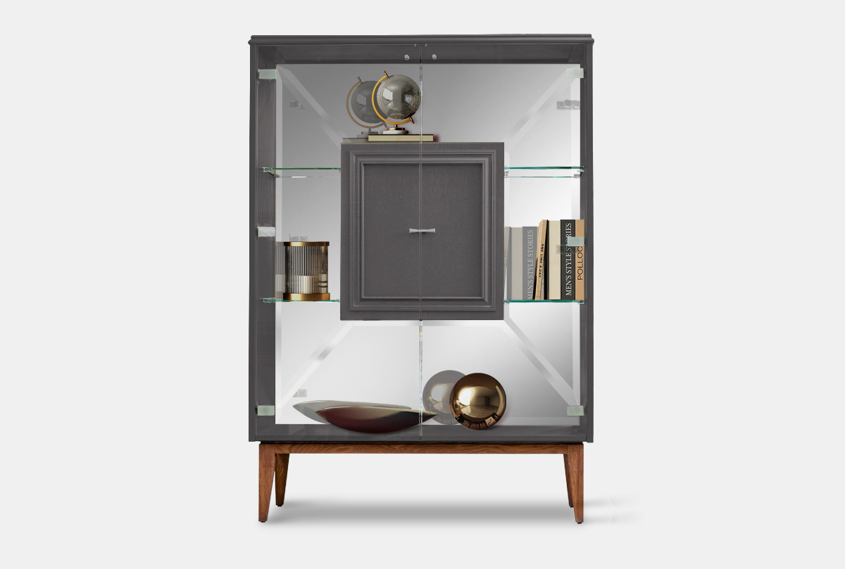 Высокая тумба с баром «Сакраменто» в цвете «антрацит матовый, орех» станет в стиле современной американской классики – идеальное решение для Вашей гостиной.