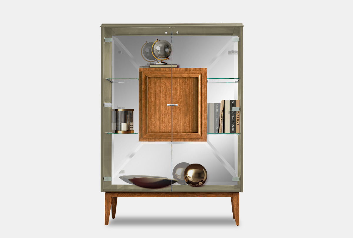 - две просторные стеклянные полки слева и справа для декоративных элементов, посуды или коллекционных предметов;
