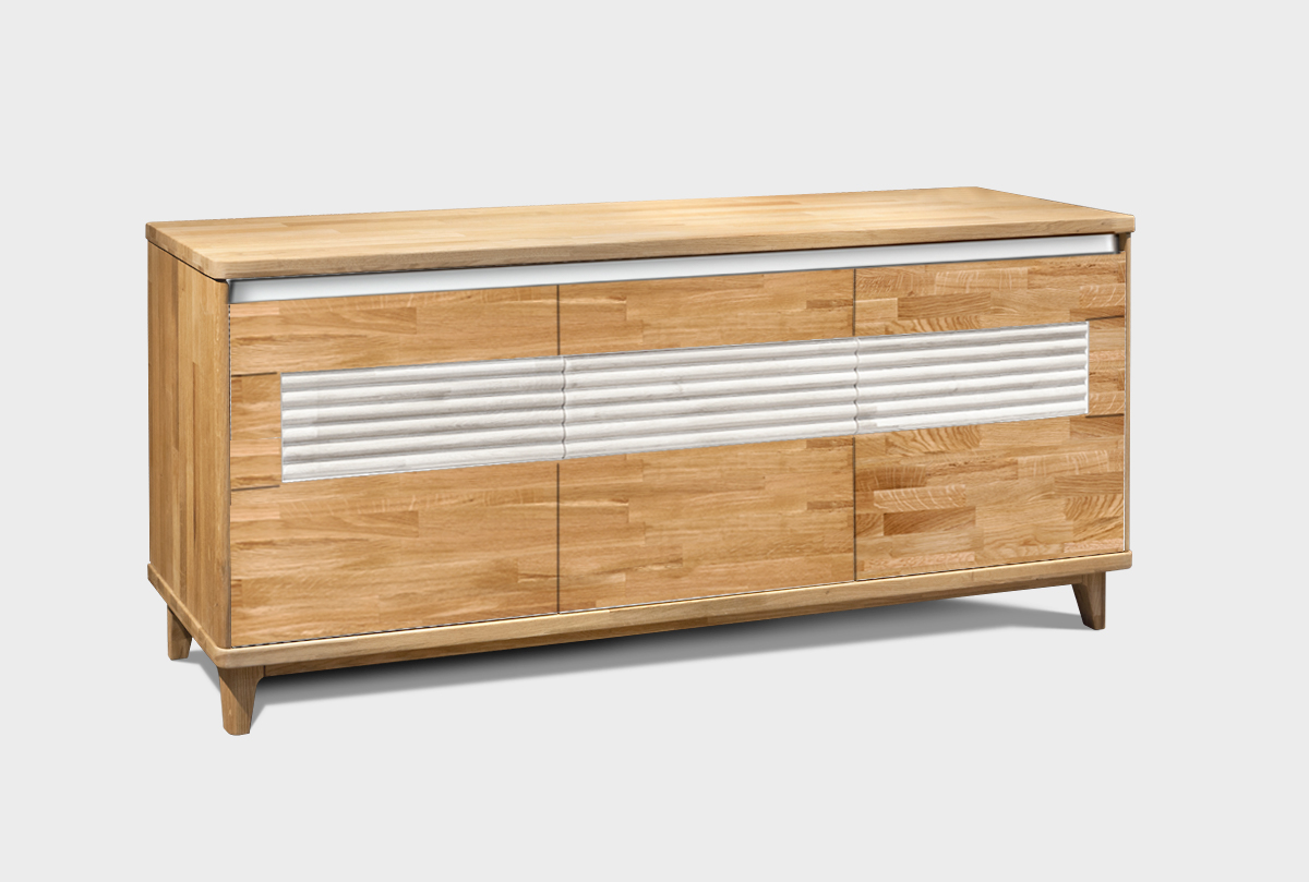 Трехдверная тумба Wallstreet 3 в цвете «к-бейц-масло, ф-бейц-масло, вст-белый» выполнена в современном стиле Лофт с сочетанием текстуры натурального дерева и акцентных вставок. Светлый оттенок изделия придаст помещению атмосферу упорядоченности и спокойствия. Высокая тумба идеально подходит для гостиной и спальни.