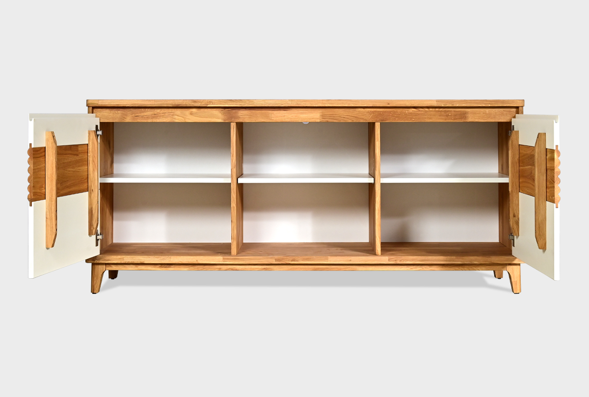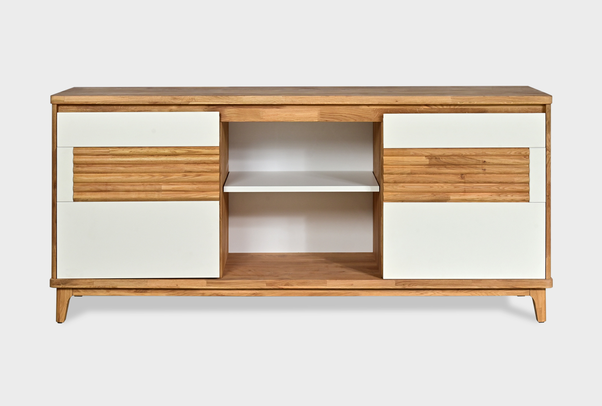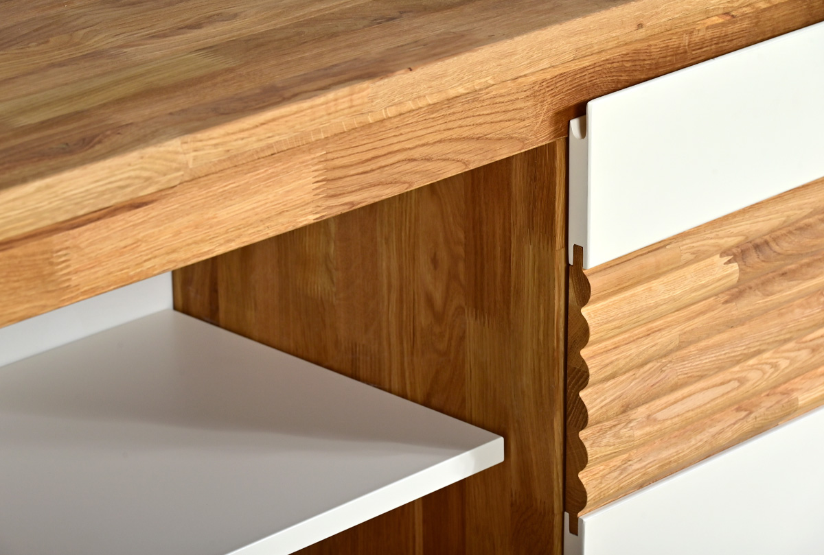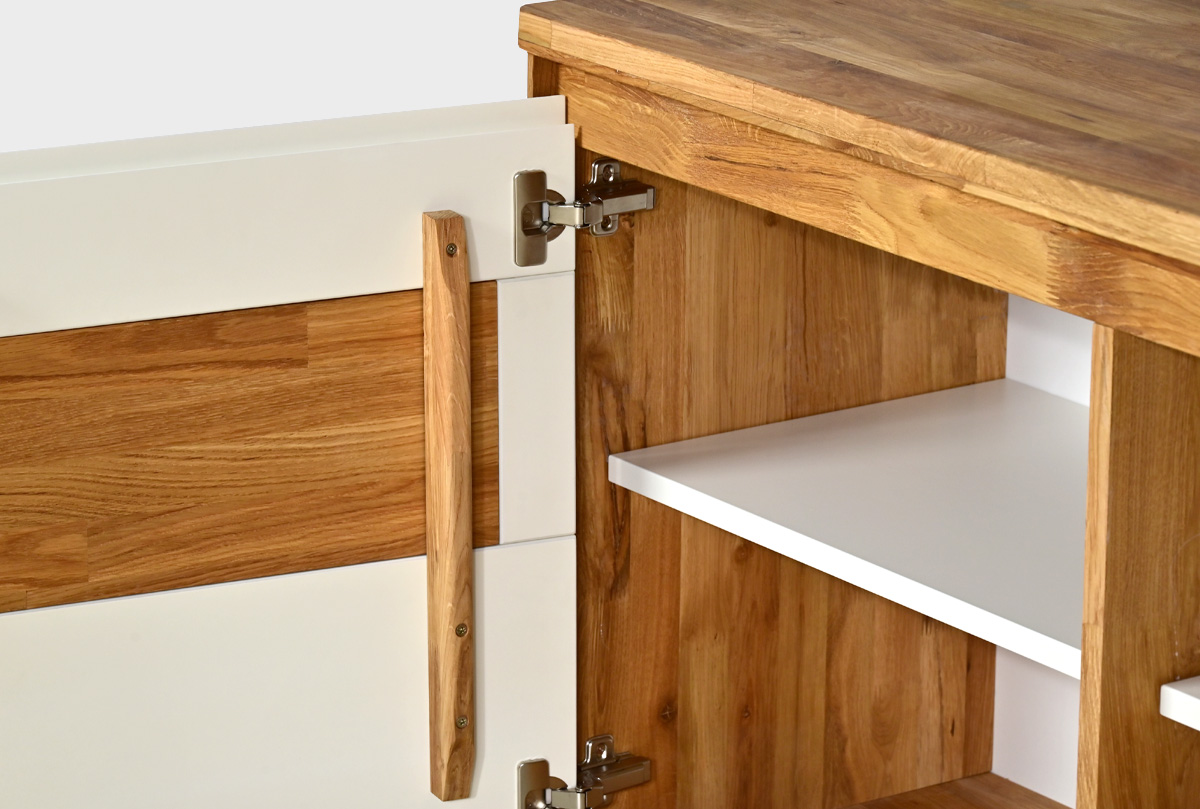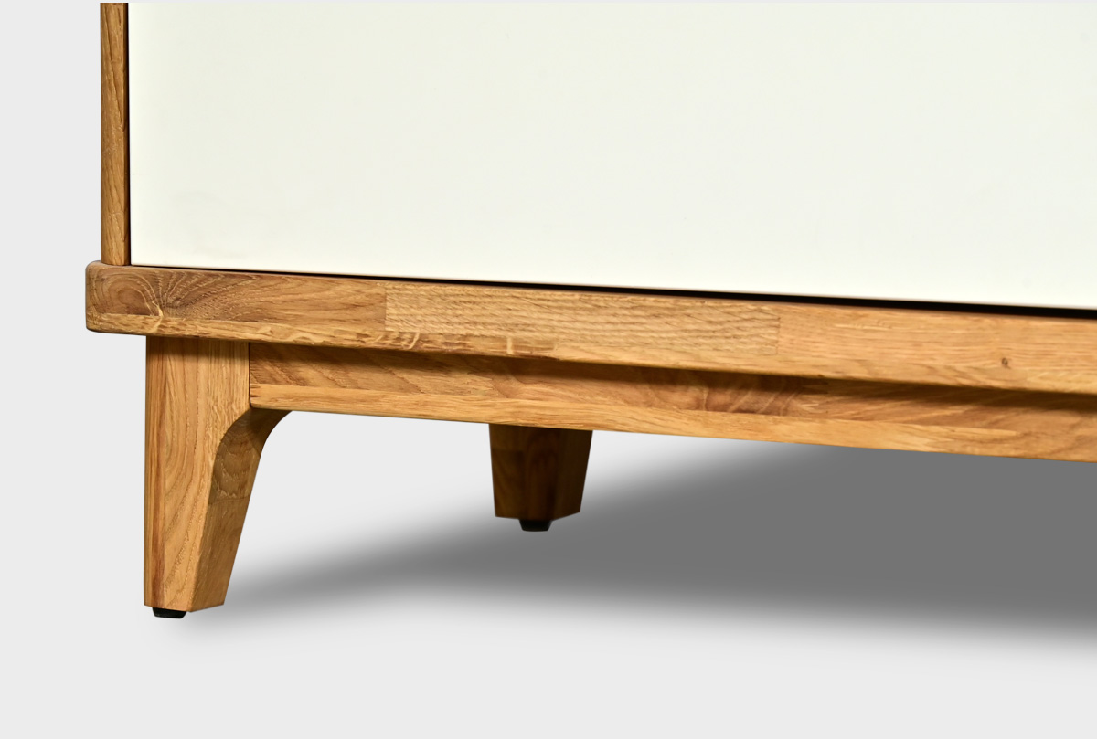 ✅ Тумба изготовлена из комбинации материалов - массива дуба и эмали. Из массива дуба изготовлен корпус, вставки с фрезеровкой.