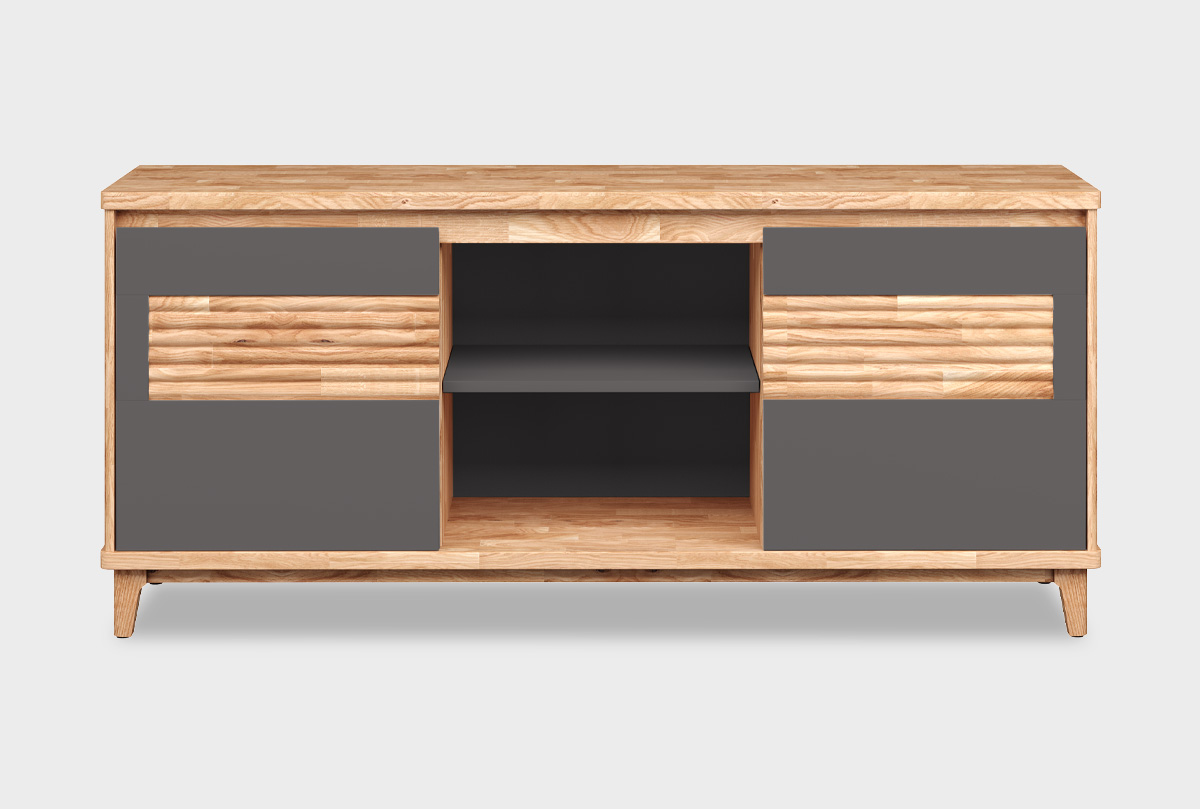 Тумба Wallstreet 3 с нишей в цвете «к-бейц-масло, ф-антрацит, вст-бейц-масло» выполнена в современном стиле Лофт с сочетанием текстуры натурального дерева и акцентных вставок. Светлый оттенок изделия придаст помещению атмосферу упорядоченности и спокойствия. Высокая тумба идеально подходит для гостиной и спальни.