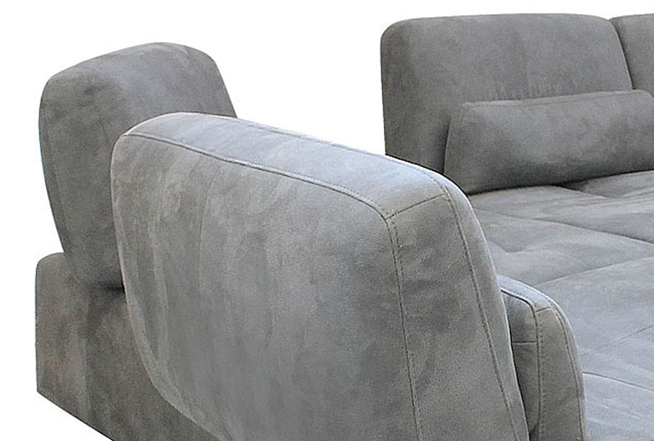 ✅ В спинку дивана установлен «шагающий» механизм типа «Hip-Hop», который позволяет перемещать подушку спинки относительно сидения и увеличивать глубину сидения с 530 мм до 930 мм.
