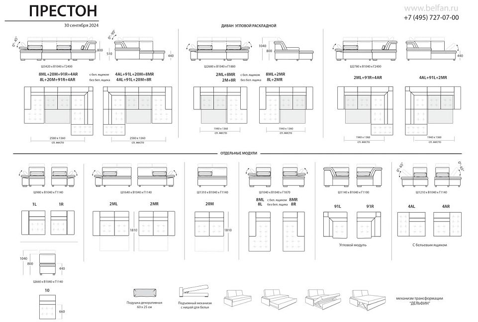 ✅ Комфортный сон для Вас или гостей обеспечивает встроенный механизм для ежедневного сна «Дельфин» (спальное место 2000 х 1400 мм). Механизм «Дельфин» один из самых надежных и простых, он позволяет разложить диван в спальное место всего за 2 движения.