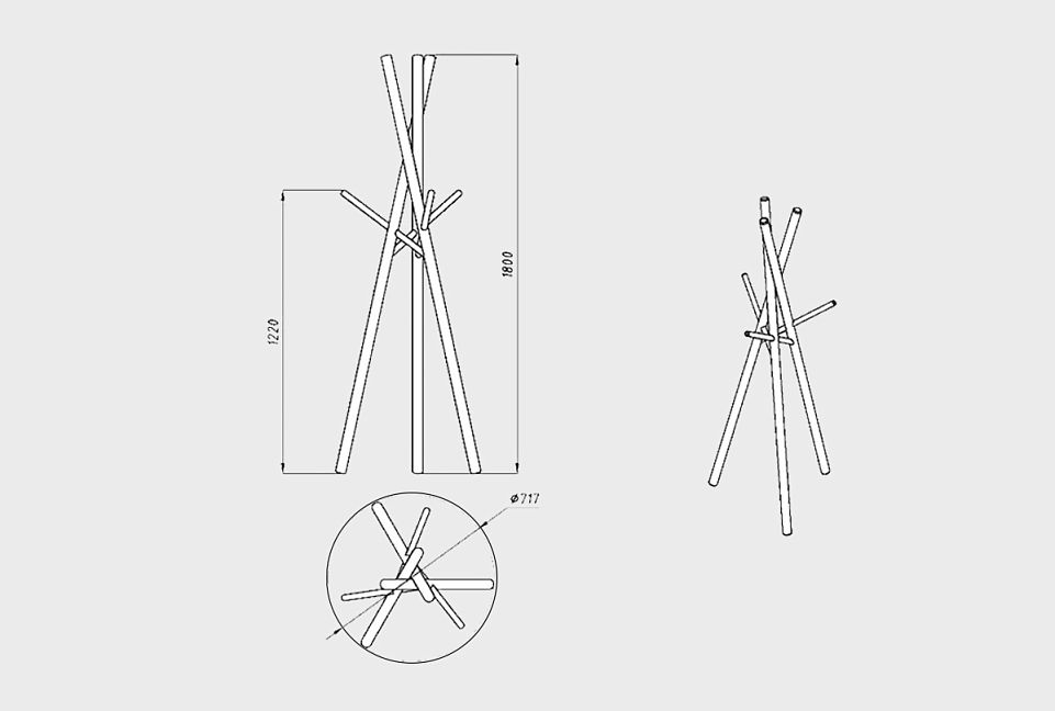 Вешалка напольная «Art Collection» (Арт Коллекшен) в цвете «бейц-масло» в стиле Лофт из массива дуба. ШхВхГ 717 х 1800 х 717 мм.