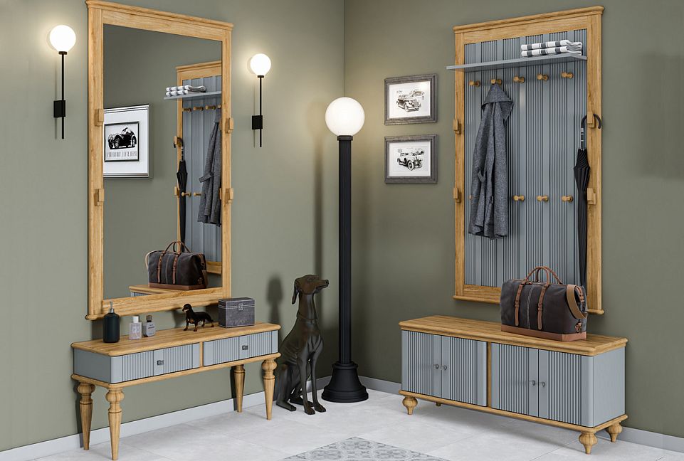 Вешалка настенная «Рандеву» 160 в цвете «серый 7042+антик 24». Размеры (ШxВxГ) 970 x 1642 x 40 мм. Классическая настенная вешалка из коллекции «Рандеву» - практичное приобретение для небольшой прихожей. Оснащена восемью крепкими крючками и зеркалом. Может использоваться в комплекте с другими подходящими по стилю предметами мебели или как отдельный элемент.