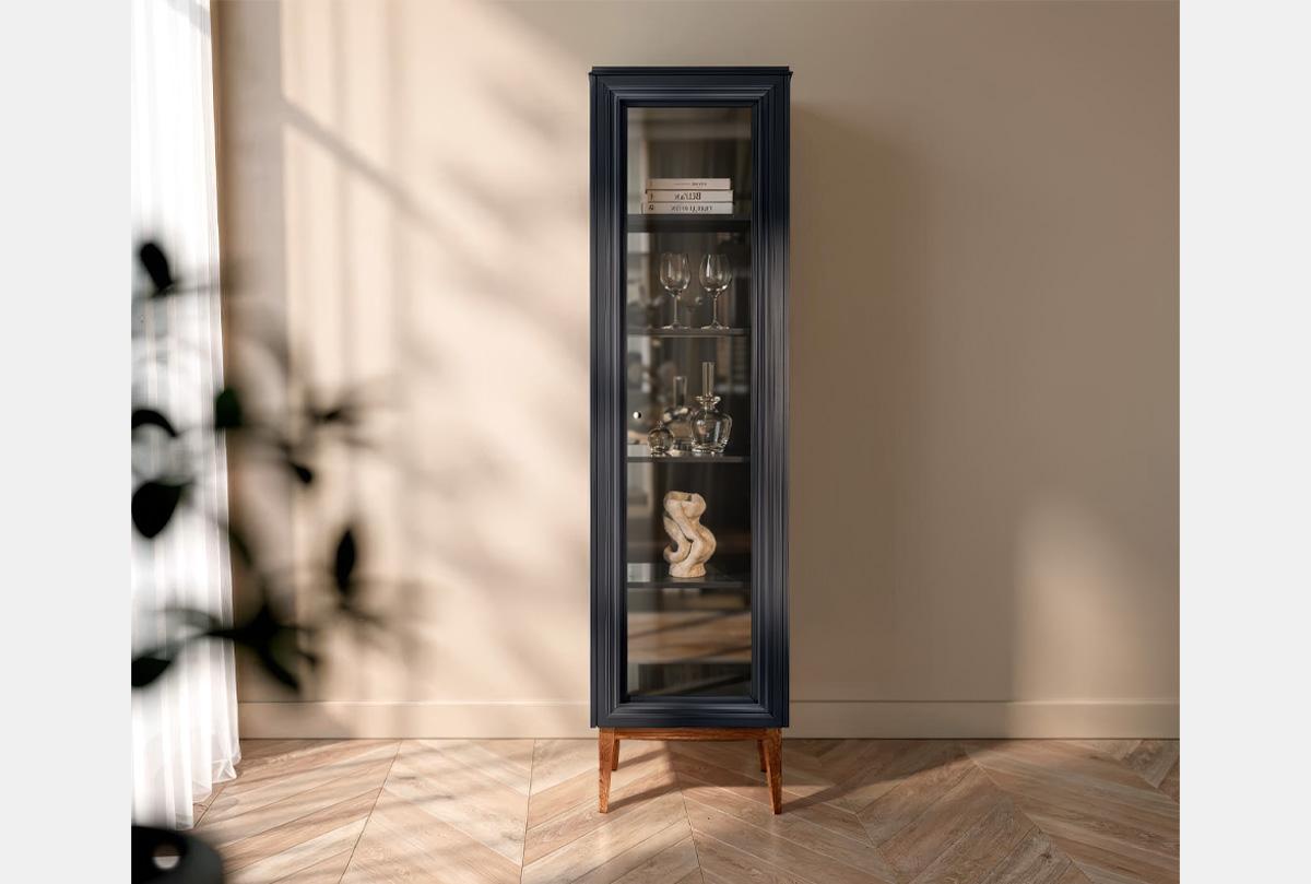 ✅ Задняя стенка витрины украшена зеркалом, которое визуально расширит пространство и наполнит интерьер дополнительным светом.