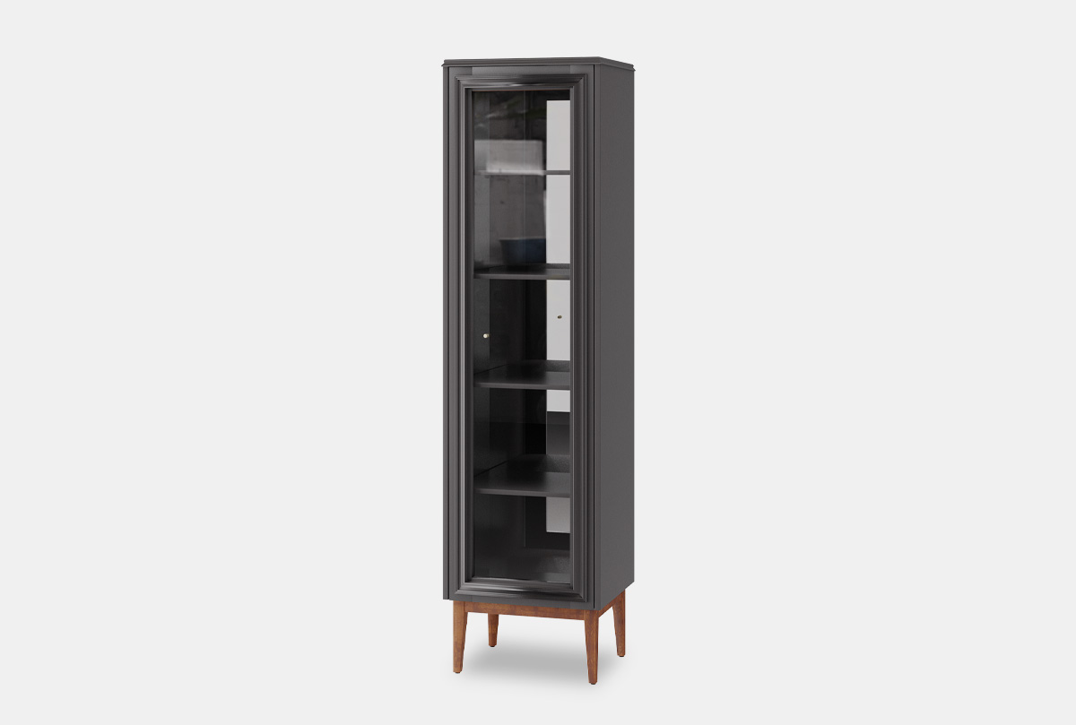 Витрина легко станет центром притяжения в гостиной или даже в домашнем кабинете. В светлом оттенке «марципан» она добавит тепла и уюта, а в цвете «сумеречный» — создаст эффект глубины и благородства. Можно использовать пару витрин — левую и правую, разместив их по бокам от комода или ТВ-тумбы из той же коллекции.