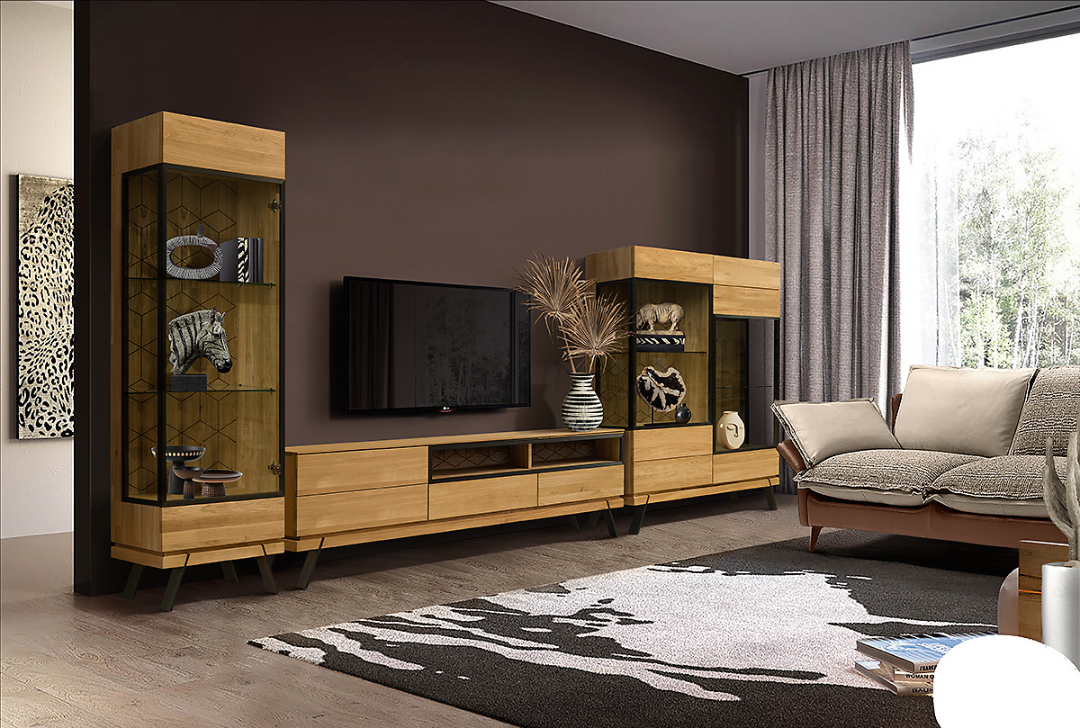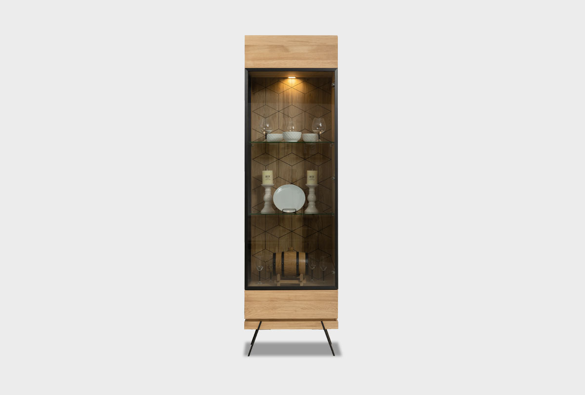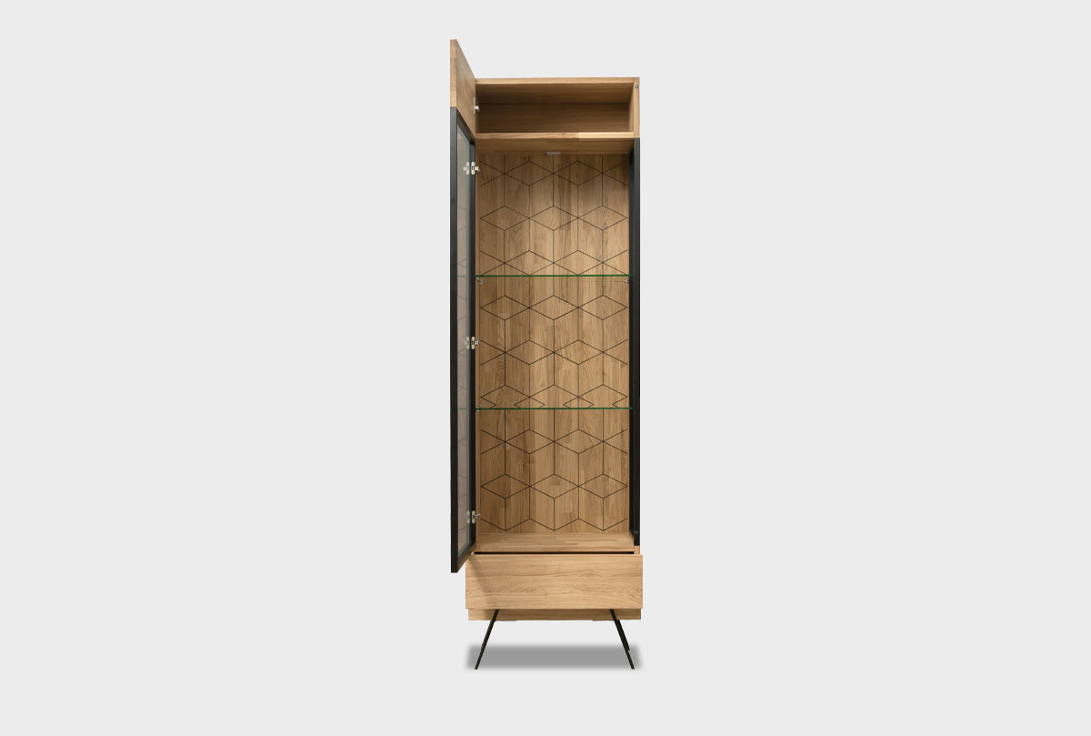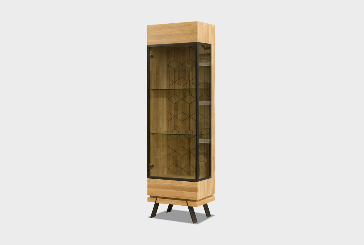 Левая однодверная витрина «Etna» с декором из дуба в цвете дуб натуральный в стиле Лофт.