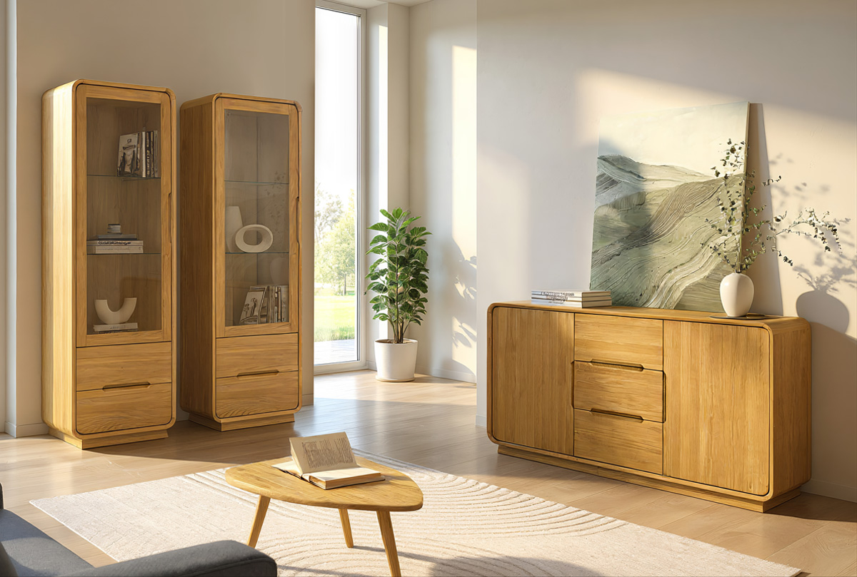 ✅ Левая витрина прекрасно работает как самостоятельный акцент или в композиции с правой версией — создавая элегантную и функциональную пару в гостиной, столовой или кабинете.