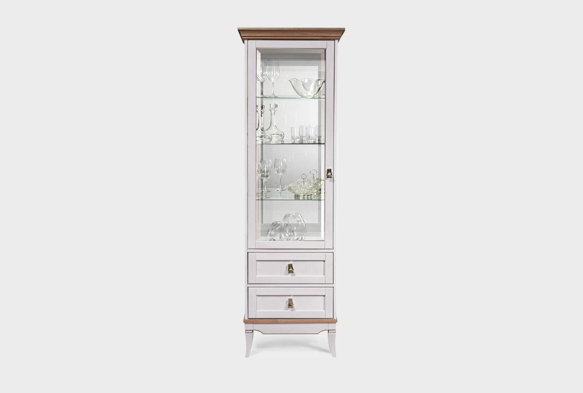 Однодверная левая витрина «Стюарт» в классическом стиле, в цвете "дуб белый, натуральный дуб".