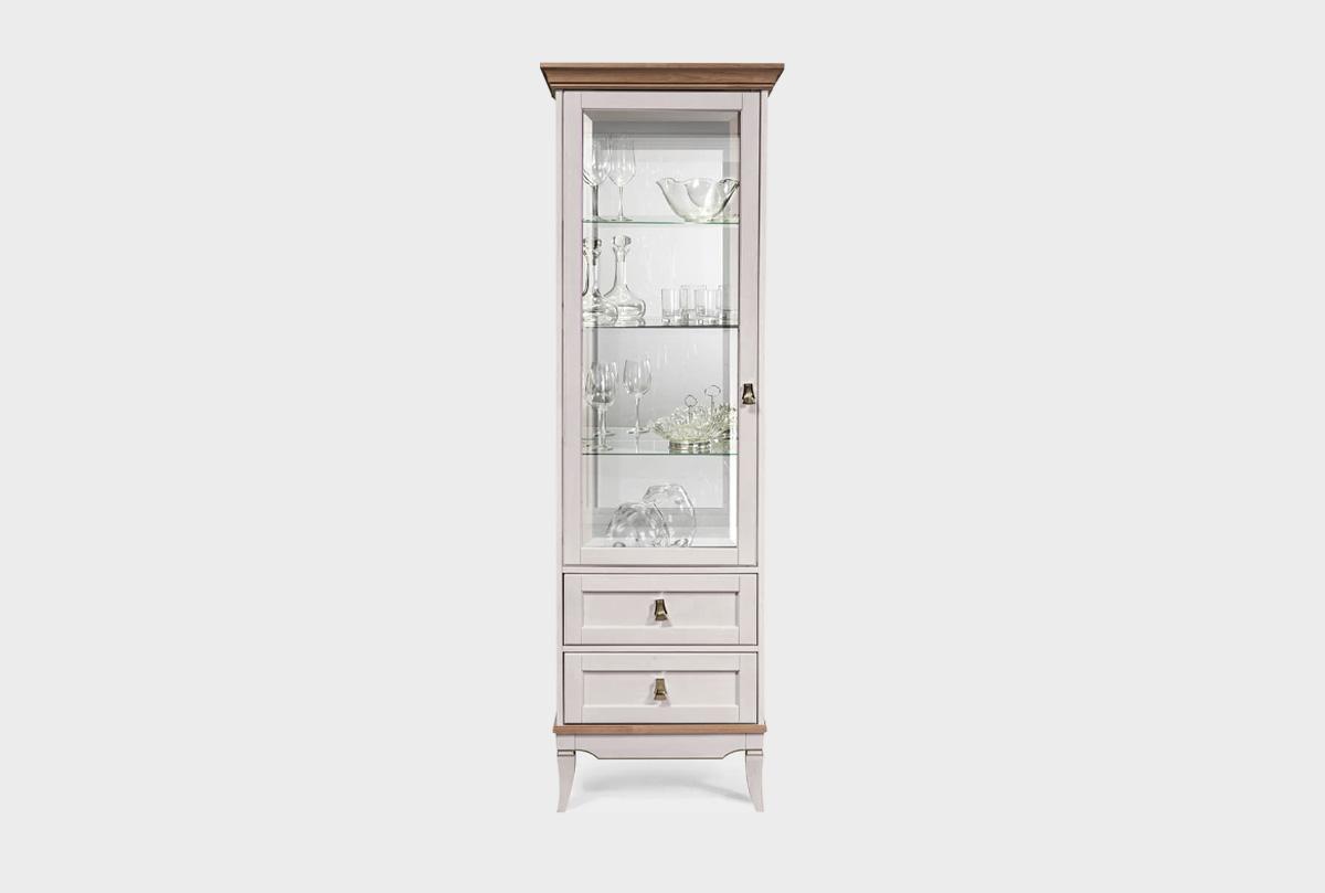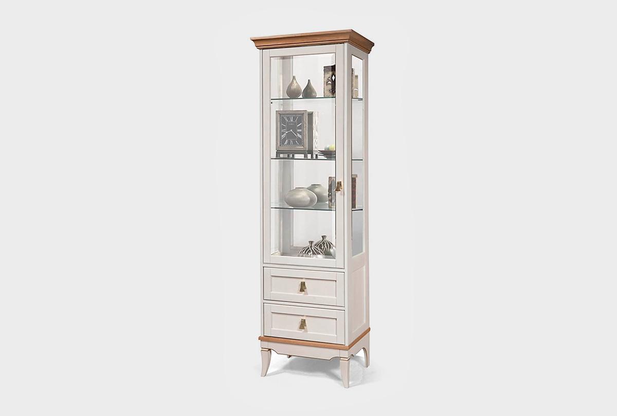 Однодверная левая витрина «Стюарт» в классическом стиле, в цвете "персидский жемчуг, натуральный дуб".