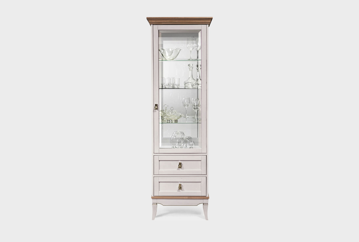 Однодверная правая витрина «Стюарт» в классическом стиле, в цвете "персидский жемчуг, натуральный дуб".