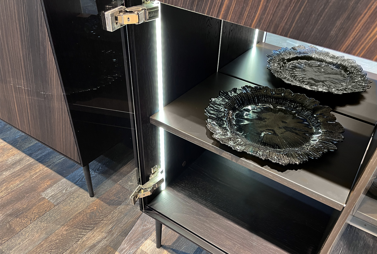 ✅ В витрине установлена подсветка, которая включается и выключается движением в нижней части витрины.