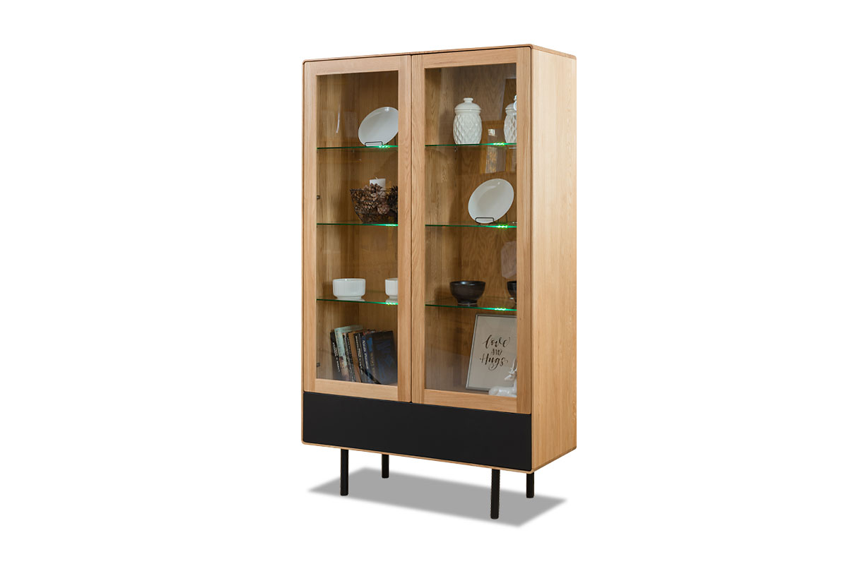 Витрина 2-х дверная "Norman"; 1 ящик; дуб натуральный, чёрный