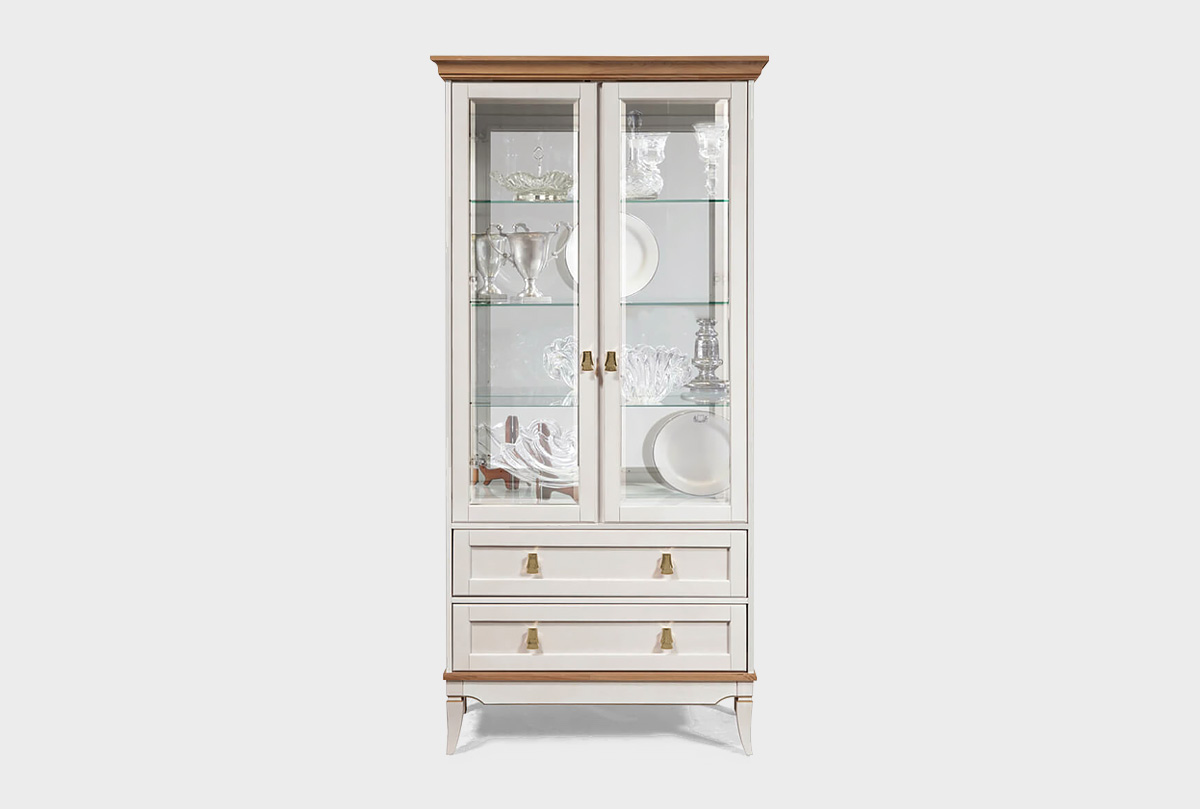 Двухдверная витрина «Стюарт» в классическом стиле, в цвете "персидский жемчуг, натуральный дуб".